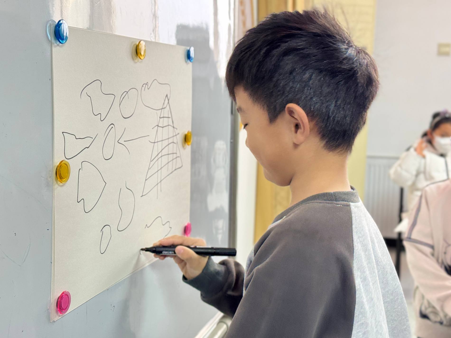 “接力作画猜成语”环节则将创意与协作完美融合,成为整场活动的一大亮点。青少年们被分成若干小组,每组队员依次接力作画,仅通过简单的线条传递成语信息,最后一名队员需根据画作猜出正确答案。在这个过程中,大家充分发挥想象力与创造力,有的队员寥寥几笔便勾勒出核心意象,有的则通过夸张的构图传递关键信息。队员们相互鼓劲、默契配合。这个游戏不仅锻炼了青少年的观察力、表现力与逻辑思维能力,更让他们深刻体会到团队协作的重要性,懂得了沟通与配合在集体活动中的关键作用。