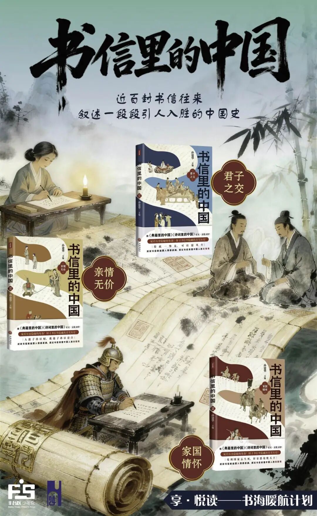 继首期《中国记忆・传统节日图画书》带来的传统文化盛宴后,丰台区少年宫“24+N”青少年公益阅读活动综合育人场馆的“书海暖航计划”第二期如约而至。本期为中高学段的同学们带来重磅好书——《书信里的中国》,让跨越千年的笔墨文字,带我们解锁藏在尺牍间的亲情、友情与家国担当。