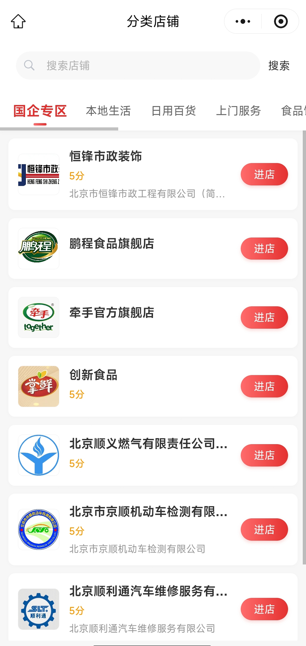 全新上线的「国企专区」,点击进入即可看到顺义区耳熟能详的国企品牌,专区内所有商品与服务均经过严格筛选,从源头把控品质。