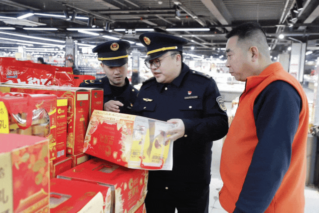 春节临近,各大商超内人流渐增,市民们纷纷前来选购年货、备置食材。区市场监督管理局执法人员对全区多家商超开展监督检查,重点查验年货礼盒生产资质、鲜肉制品检疫检验凭证,检查糕点制品净含量标注、鲜奶制品冷藏储存温度是否符合标准,并督促商家严格落实进货查验、索证索票制度,规范食品储存温度,切实守好食品流通消费环节安全关。