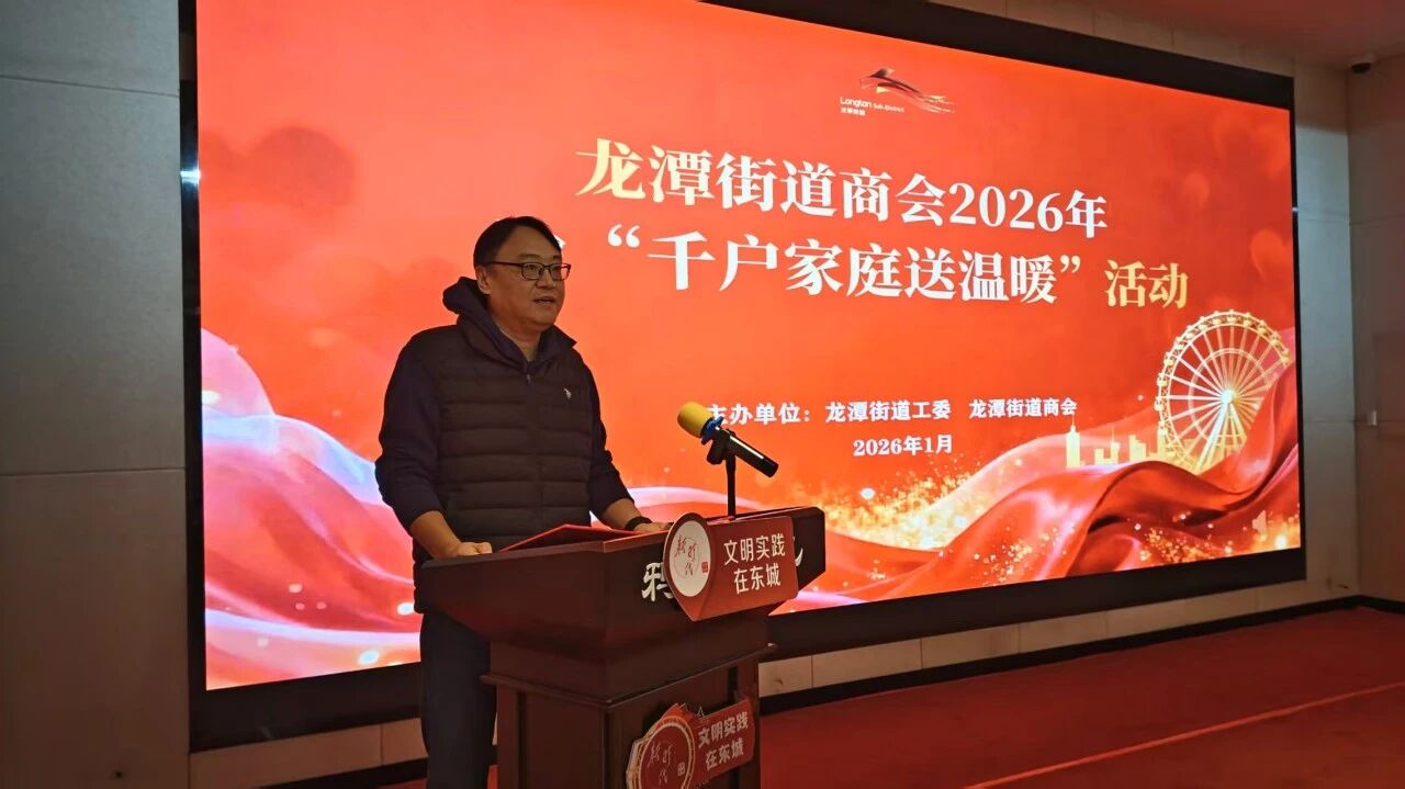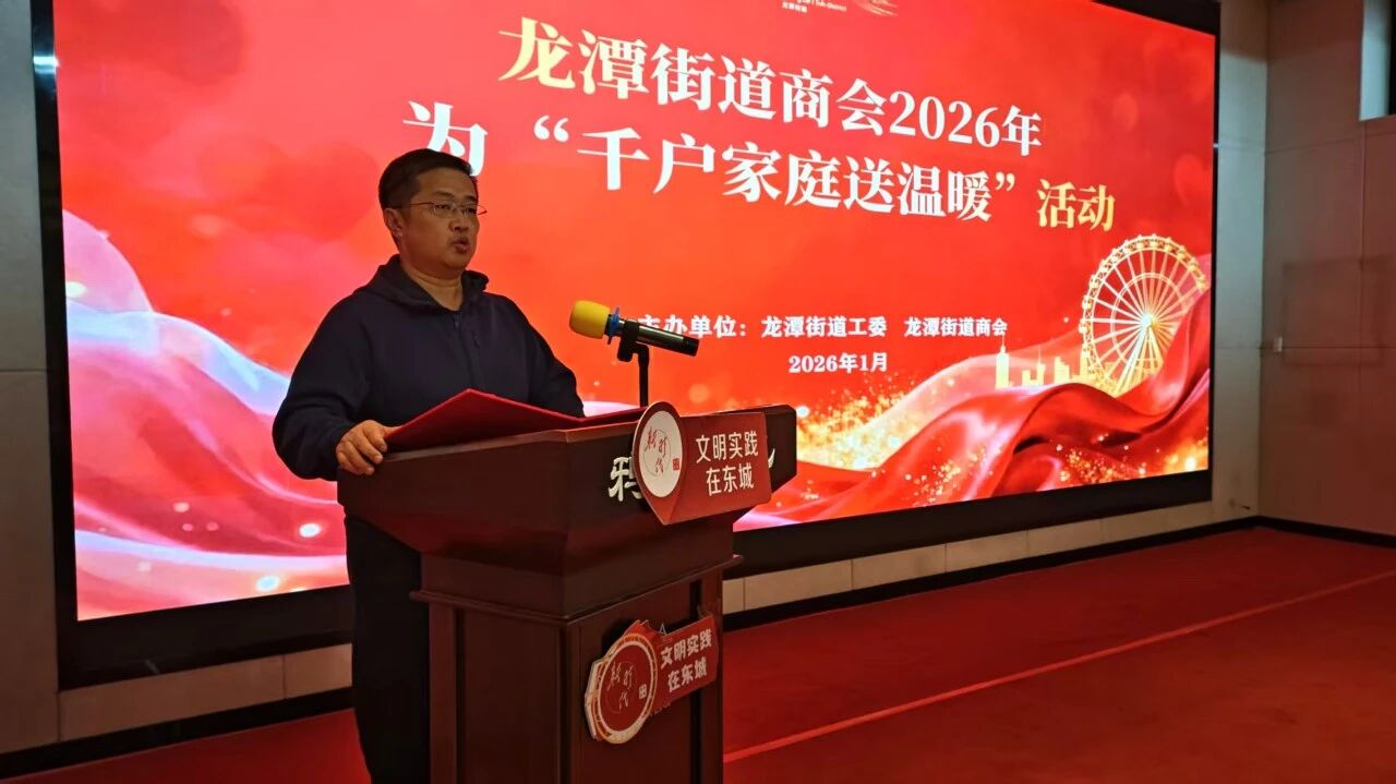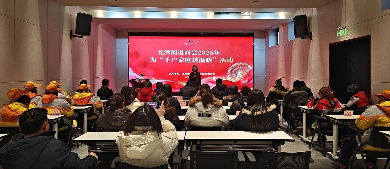 1月30日,东城区龙潭街道商会2026年“为千户家庭送温暖”活动启动仪式在光明西街一号院多功能厅成功举办。龙潭街道工委副书记李洋,龙潭街道商会班子成员出席本次活动。龙潭街道辖区居民、两新群体、社工代表等40余人参加活动。