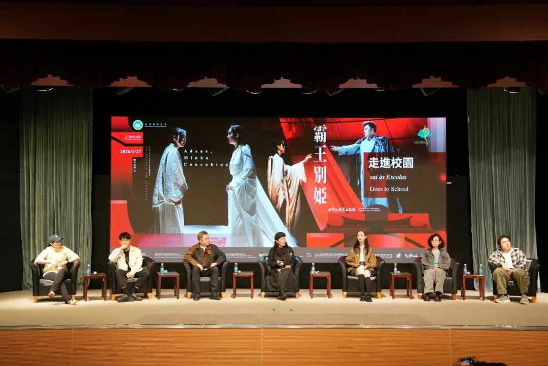 1月27日下午,《霸王别姬》剧组主创走进澳门科技大学,与人文创作等专业的学生们展开艺术交流,探讨经典文本走向戏剧舞台的魅力,揭秘该剧台前幕后的细节。在场同学针对“在当代如何演绎历史人物”等内容进行提问,演员围绕吃透剧本、查阅资料、结合个人经验等方式进行了分享,推动艺术院团与高校在艺术美育方面双向赋能。
