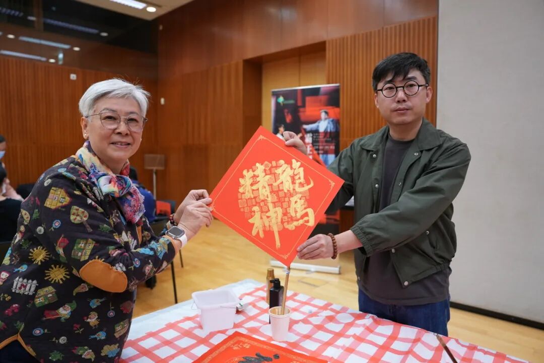 2月1日,《霸王别姬》创作分享会暨“耆福挥春”工作坊在澳门文化中心举办。巡演接近尾声,有参加活动的市民看过《霸王别姬》,对该剧台前幕后的创作细节十分感兴趣,并表示这是一次难得的创作分享,更是深入了解北京人艺与话剧艺术的绝佳机会。临近新春佳节,剧组主创们与大家一同“耆福挥春”,泼墨书写“福”字,表达喜庆吉祥的美好祝福,感受传统节日习俗,传承文化根脉。