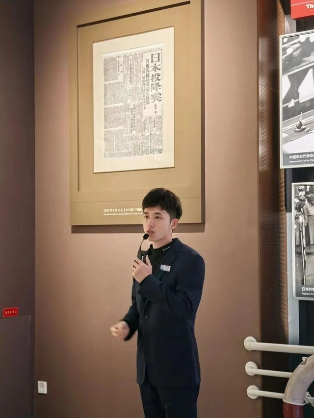 2025年7月7日,纪念全民族抗战爆发88周年仪式暨《为了民族解放与世界和平》主题展览开幕式在抗战馆隆重举行,蔡宇翔作为骨干讲解员全程参与。他凭借对红色历史的深刻体悟与娴熟的讲解技巧,向到场的党和国家领导人、抗战老兵、各界代表等生动讲述刘老庄八十二烈士、川军“死字旗”、狼牙山五壮士遗物等珍贵文物背后的英烈故事,巧妙串联井冈山斗争精神与抗战精神的红色脉络,让观众在回望历史中感受精神传承,将伟大的抗战精神与革命先辈的家国情怀精准传递给每一位听者。