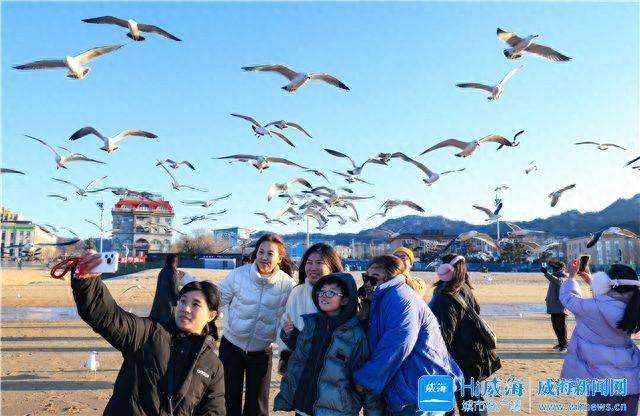近日,威海海鸥“火出圈”,抖音、小红书等社交平台上,与海鸥合影的打卡照火遍网络,“来威海‘鸥’遇浪漫”,也成为威海冬季游的热门主题之一。(全媒体新闻中心记者 朱春晓 摄)