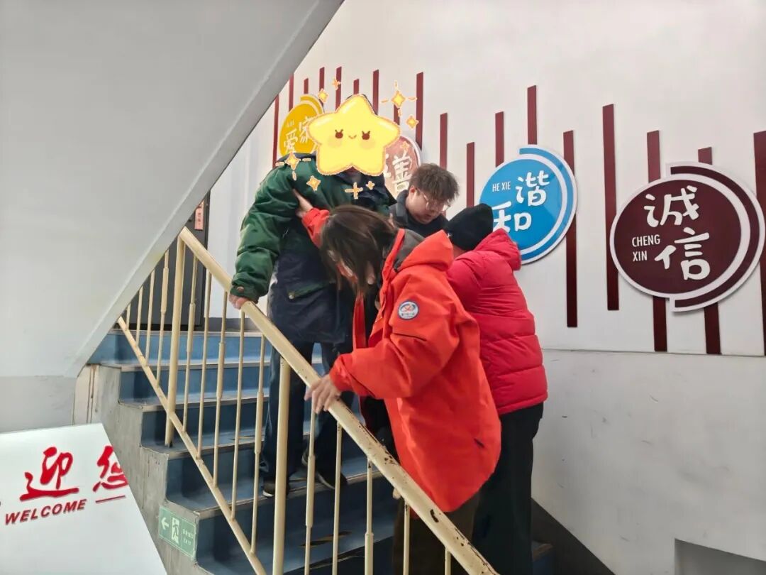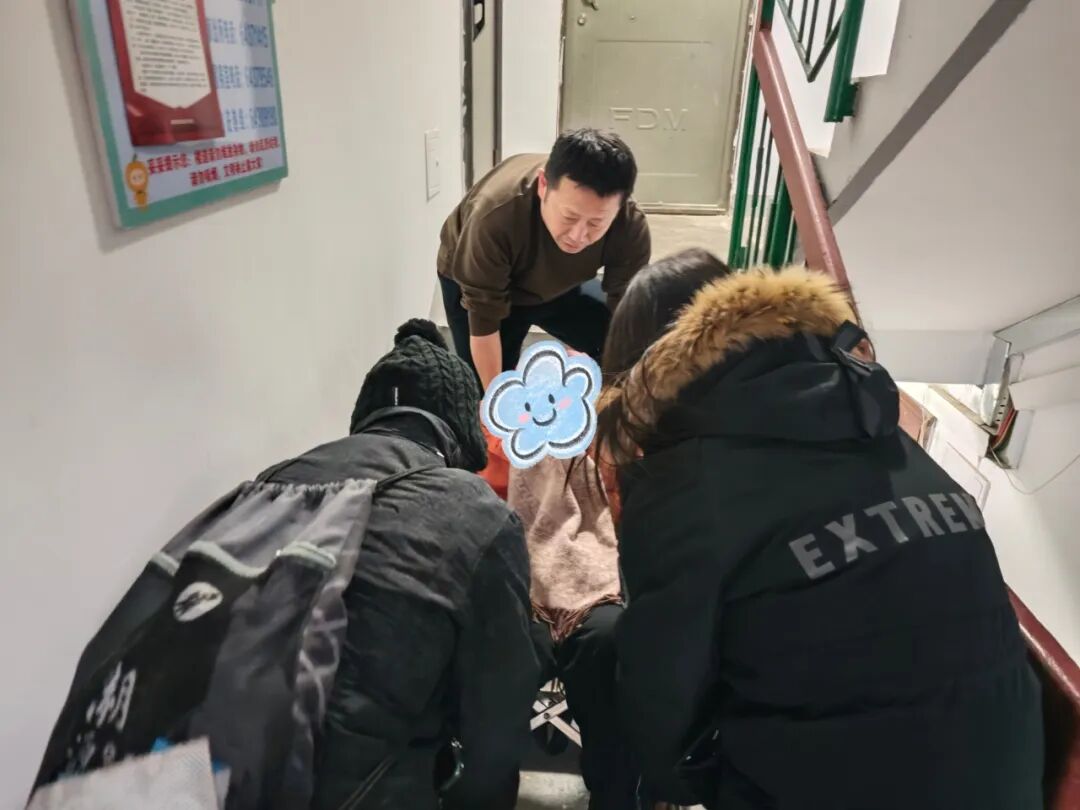 由于老人年事已高且行动不便,还居住在无电梯的四层,如何上楼成了最大难题。社区工作人员当即商议上楼方案,结合楼梯坡度与老人状况,果断采用倒拉轮椅这一最稳妥的方式,合力将老人安全护送到家。护送上楼中,社区工作人员与家属默契配合,一边留意老人状况,轻声安抚,一边把控平衡,避免颠簸,一步步艰难而坚定地将老人安全护送到家,并细心叮嘱后续照护要点,有困难随时联系社区。