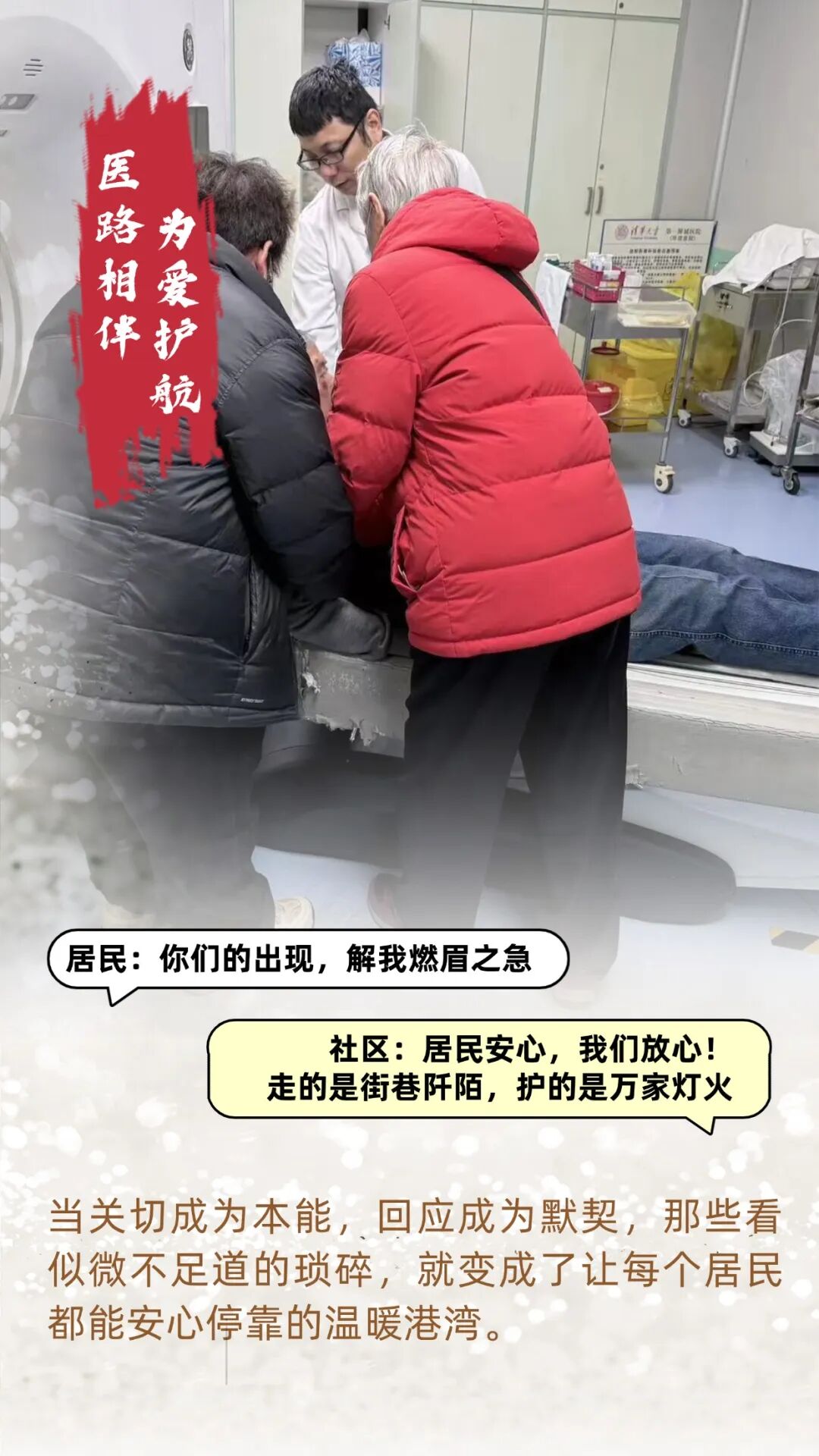 随后,社区工作人员和家属一起将老人送往医院急诊。挂号、做检查,确保老人得到及时的医疗照护。几天后,家属专程来到东路社区,向工作人员表达诚挚谢意。“多亏了你们,特别是那两个小伙子,一路陪着我们,这份雪中送炭的情谊,我们忘不了!”老人的言语里满是感动。