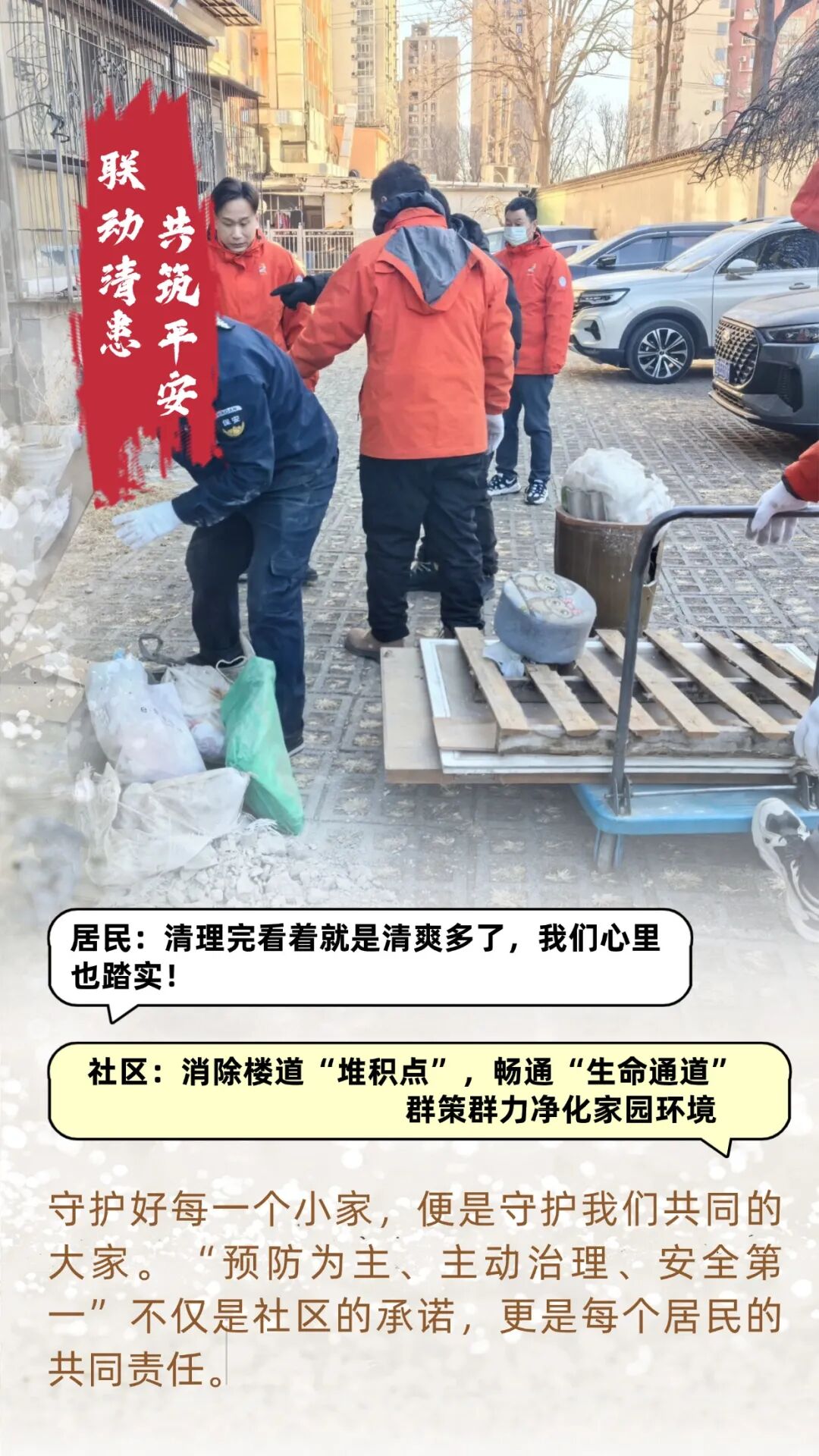 为进一步消除消防安全隐患,营造整洁、安全、宜居的辖区环境,近日,驼房营西里社区联合街道平安建设办公室及物业单位开展堆物堆料专项清理整治行动,对辖区内住宅楼公共区域堆放的杂物进行集中清理,畅通居民“生活通道”。