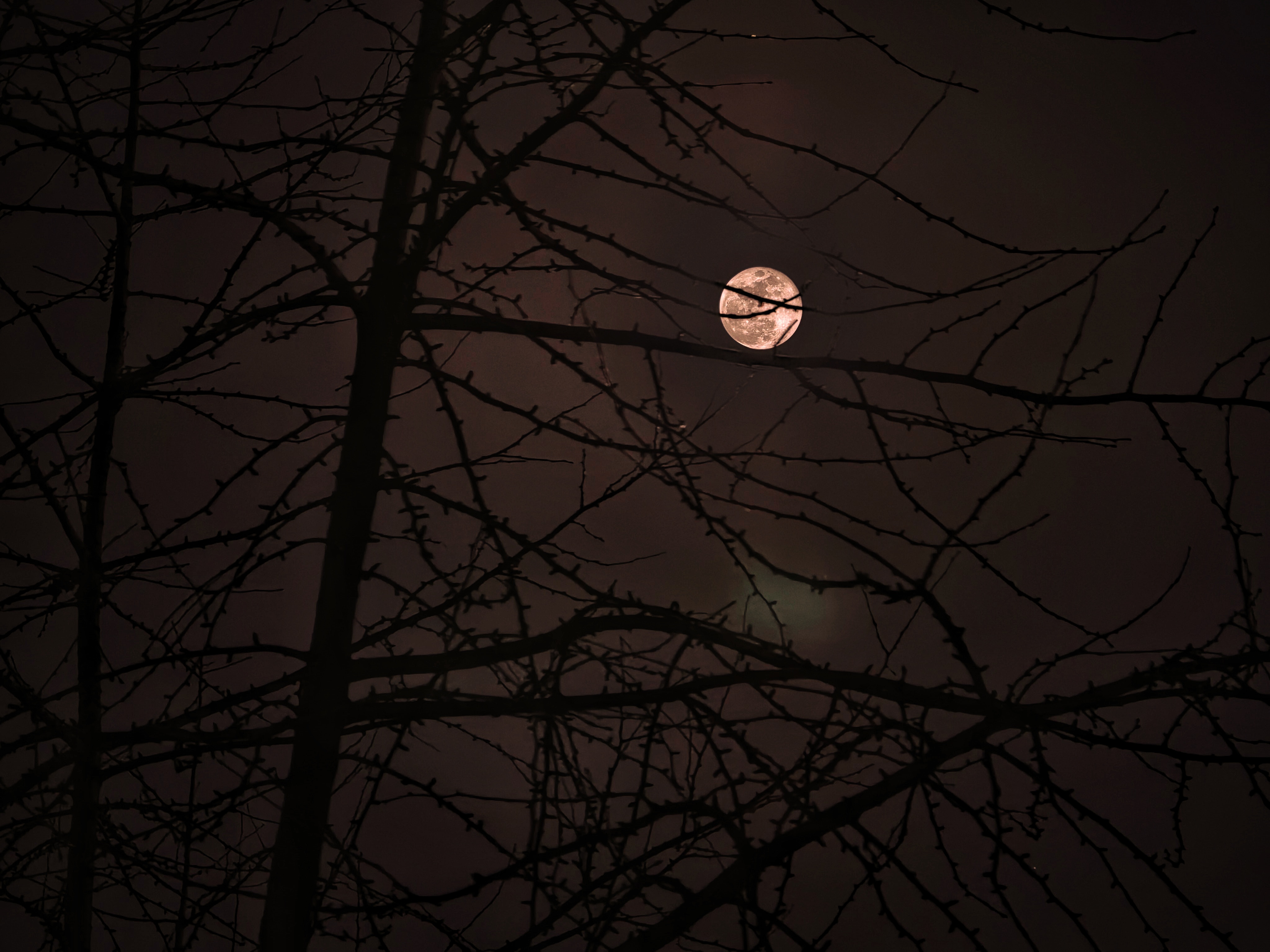 枝影摇曳,与月相映成画。月或隐于薄云,似蒙面纱;或全然展露,倾洒清辉。月中阴影,仿若嫦娥玉兔,惹人遐思。