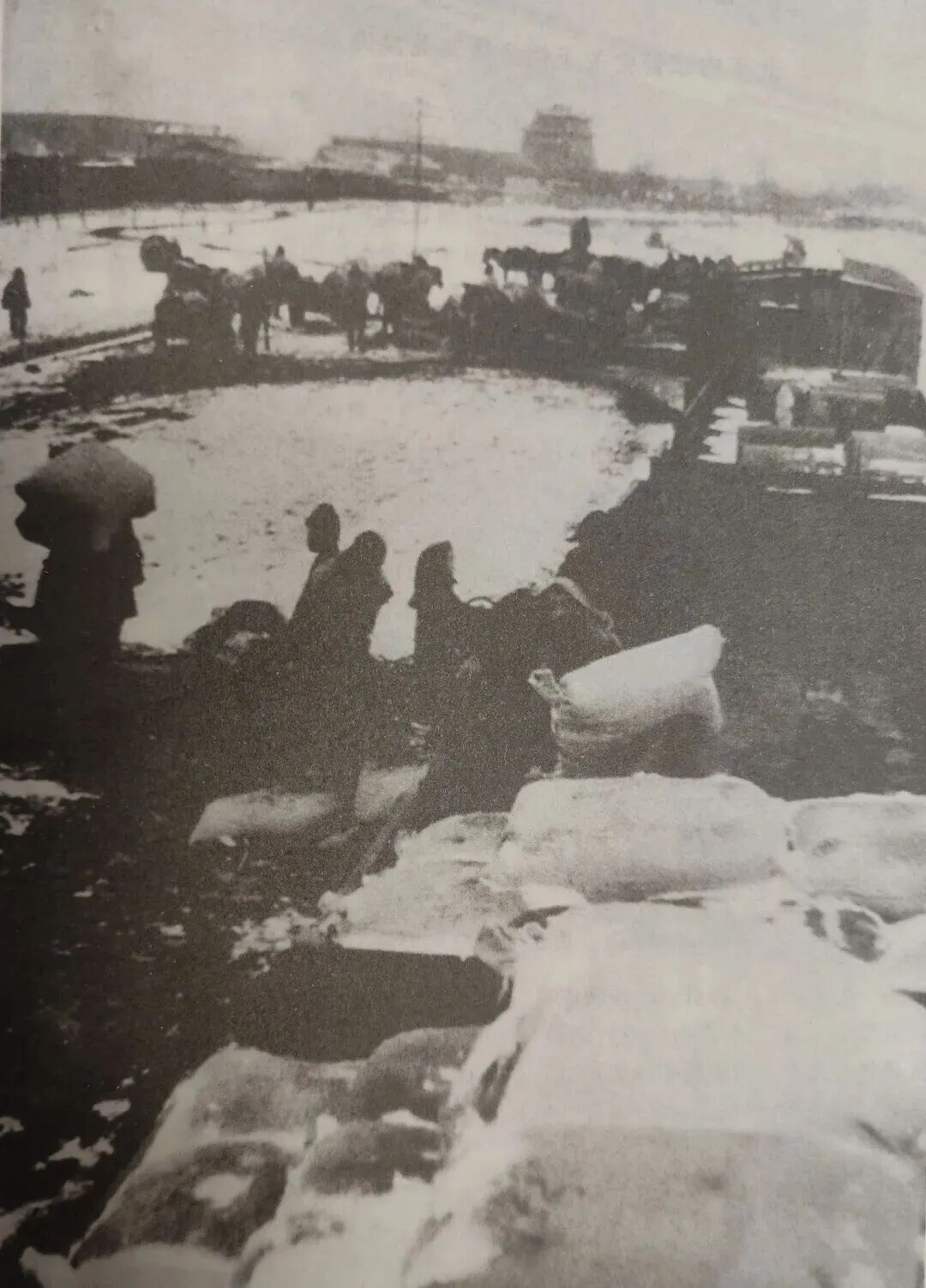 ▲图为1949年,北平市人民政府调运大批粮食源源不断运入市内,供应市民生活需要。