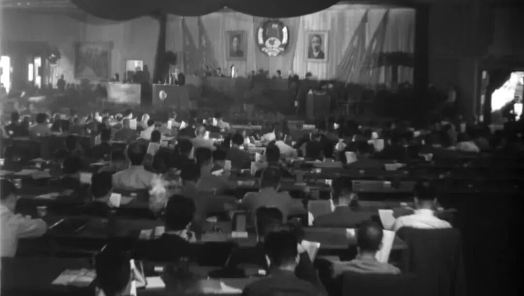 ▲1949年9月21日至30日,中国人民政治协商会议第一届全体会议在北平中南海怀仁堂举行。图为会议现场。