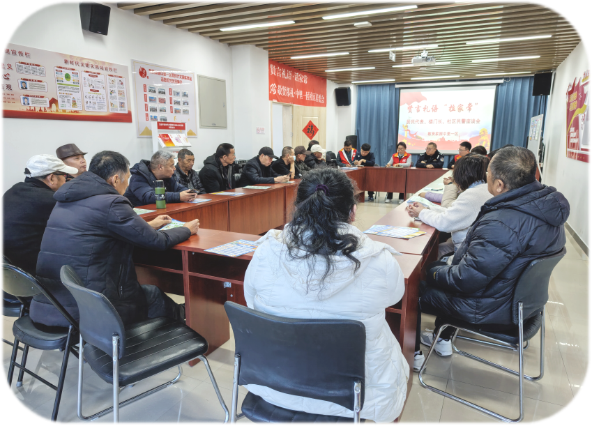 依托嵌入式社区服务体系,将议事阵地融入社区服务中心、网格驿站等空间,搭建起居民诉求与社区服务的“直通车”,打造“15分钟议事圈”。结合“贤言礼语话家常”品牌理念,布置温馨亲民的议事场景,吸引居民主动参与,让协商议事更贴近生活、贴近群众。