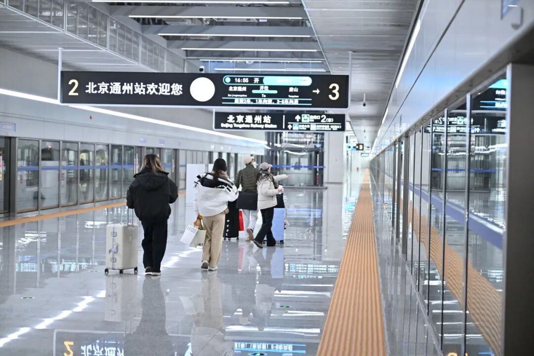 部分旅客的行李甚至只有一个双肩包。旅客坦言,出行轻量化的背后,是城市副中心交通便利性的提升,是轨道上的京津冀带给人们的便利——
