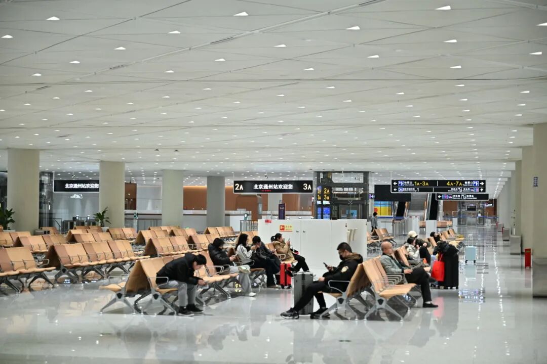 记者发现,与人们印象中的“返乡旅客络绎不绝、匆匆忙忙”相比,北京通州站的春运首日,显得轻松从容了不少。