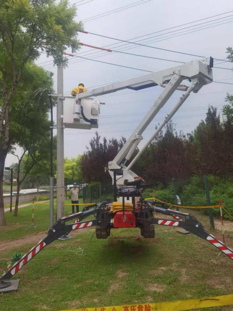 科技创新为本轮工程注入高效动能。面对复杂工况,积极引入新技术、新设备破解难题。在北四环望和公园10千伏关庄路线路附近,因道路狭窄、弯道多,常规绝缘斗臂车无法正常伸展作业,施工团队首次采用“蜘蛛车”开展带电作业,这种新型带电作业车采用小型履带式底盘,车身小巧轻便、操作灵活,适用于道路狭窄、急弯多、坡度大等复杂地形,能够精准抵达作业点位,为带电作业“全覆盖”提供了强有力的技术支持,也为后续同类工程的高效推进提供了可借鉴的新思路、新方法。