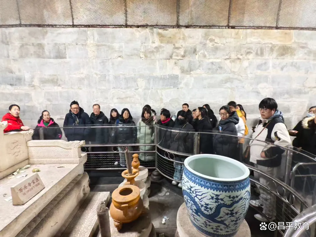 为深入挖掘昌平地域历史文化中的思政教育资源,高质量推进大中小学思想政治教育一体化建设,1月28日至29日,昌平区教育委员会联合昌平区文旅集团共同举办“行走昌平大地 上好大思政课”参观研学活动。来自昌平区6个大中小学思政创新示范联合体的30余位教师走进大运河源头遗址公园、明十三陵、居庸关、银山塔林、中国国家版本馆中央总馆等昌平区代表性人文地标,在实地探访中感悟文脉传承,在古今对话中汲取教学灵感。
