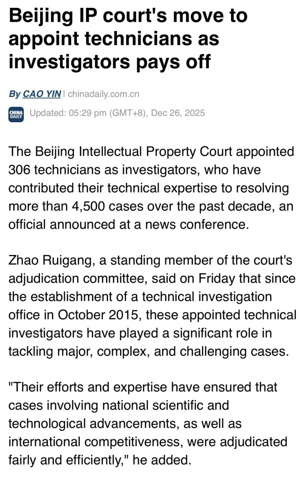 Beijing IP court's move to appoint technicians