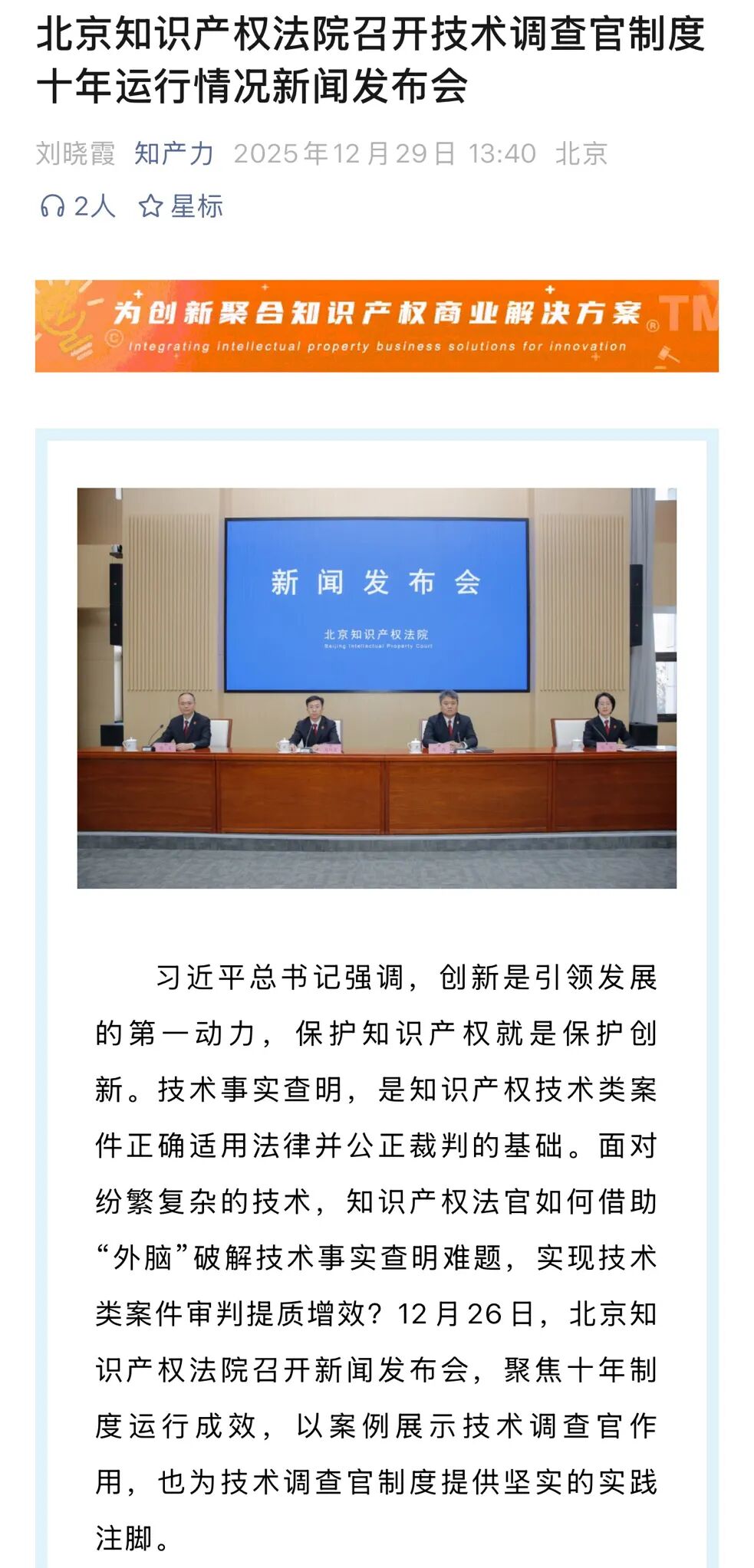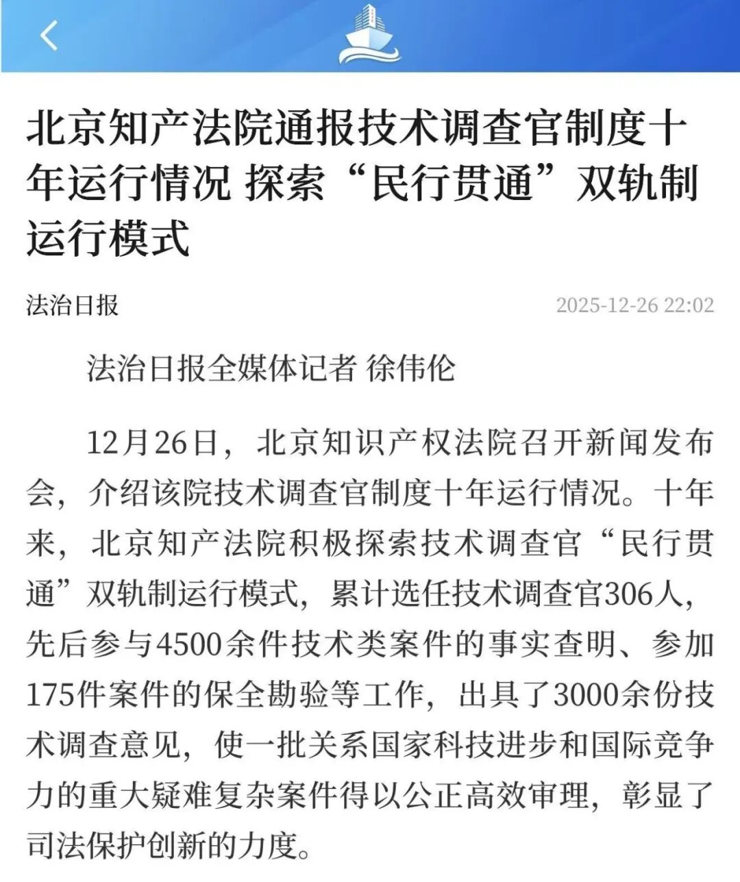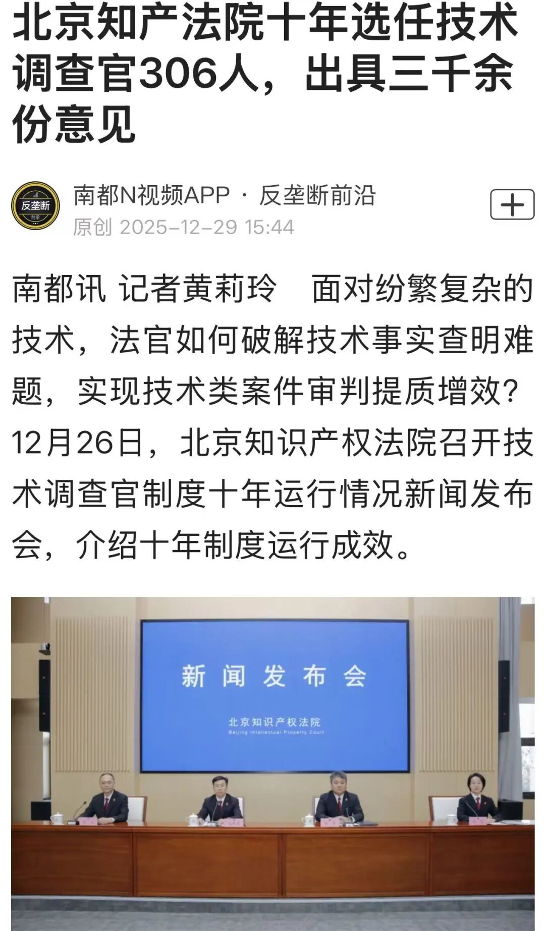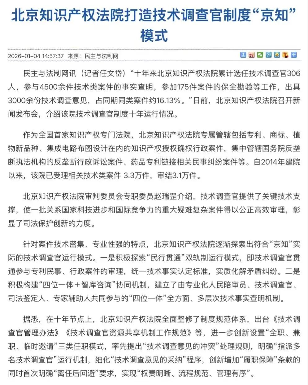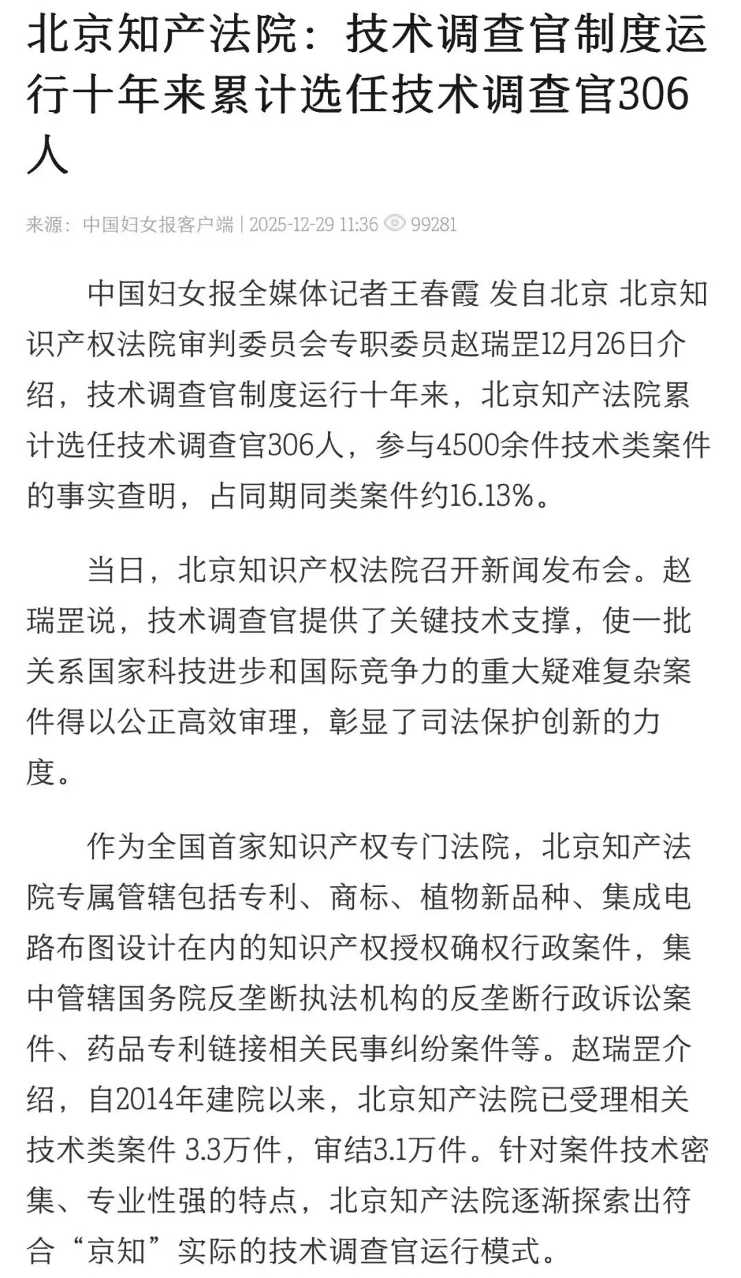北京知产法院通报技术调查官制度十年运行情况