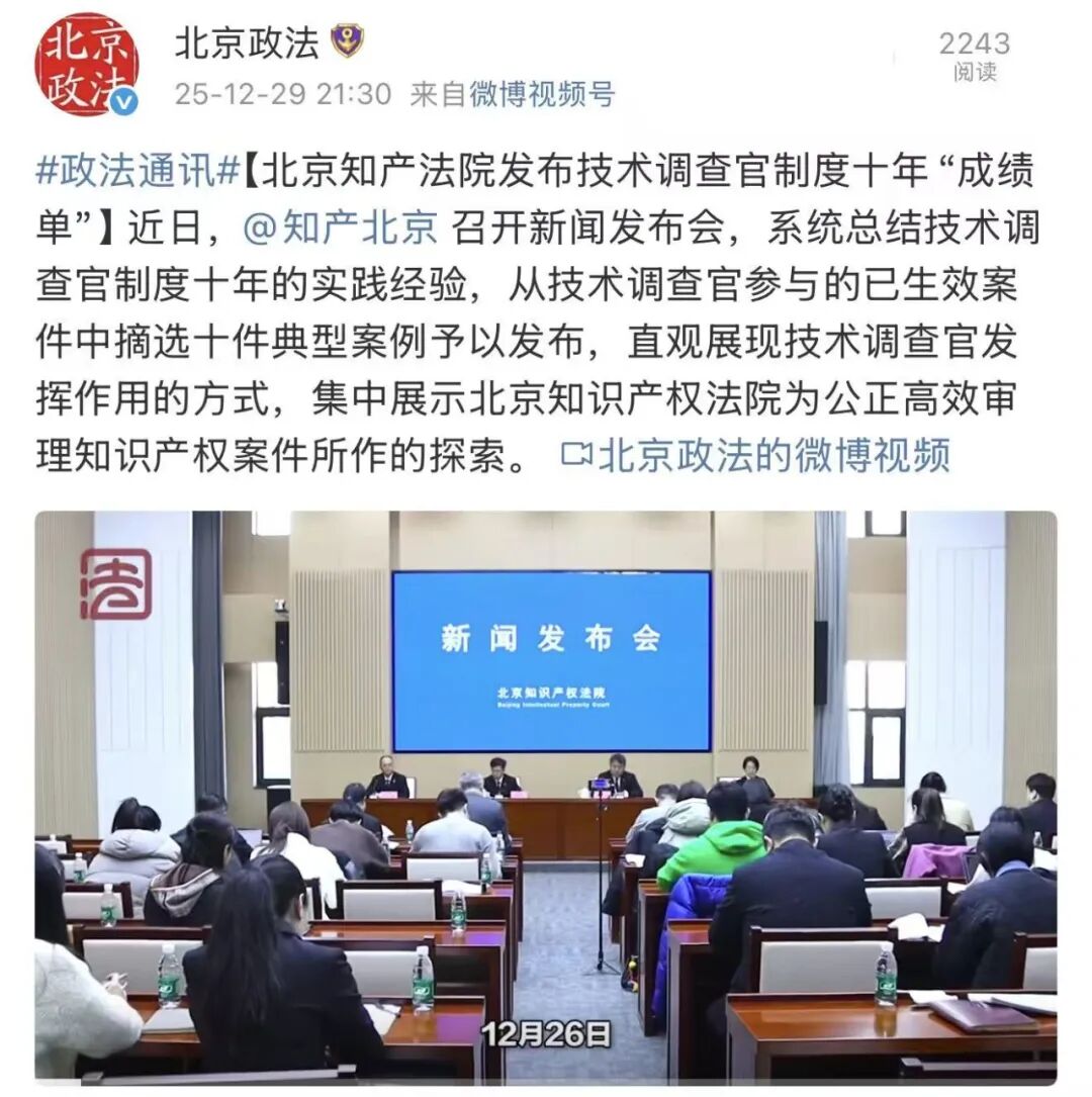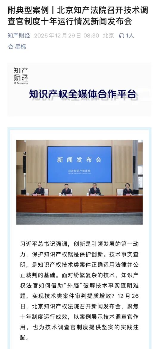 附典型案例┃北京知产法院召开技术调查官制度