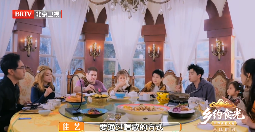 没想到吧?品菜环节直接成了“美食KTV”!张凯丽老师一首《燃烧我的卡路里》引爆全场,推荐的正是镇桌大菜葵花大斩肉。张可盈哼着《小鸡小鸡》推荐非遗道口烧鸡。这只鸡可不简单,它不仅沿用清宫“八料加老汤”的古法,还保持着寓意吉祥的元宝造型,妥妥的实力派。