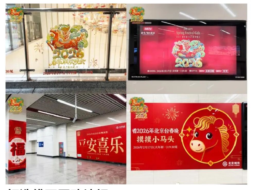 春潮涌动,年味渐浓。由青花汾酒独家冠名的2026年北京广播电视台春节联欢晚会以融入城市、贴近民生为核心,让春晚氛围走出屏幕,融入城市烟火。2月4日起,2026年北京台春晚联动北京地铁于多个地铁站点设置了创意互动装置,提前感受新春的喜庆与温暖。此外,2026年北京台春晚的宣传片也将持续轮播呈现在20条地铁线上,以现代通勤场景为载体,为市民打造沉浸式、有温度的新春体验,提前奏响春晚序曲。