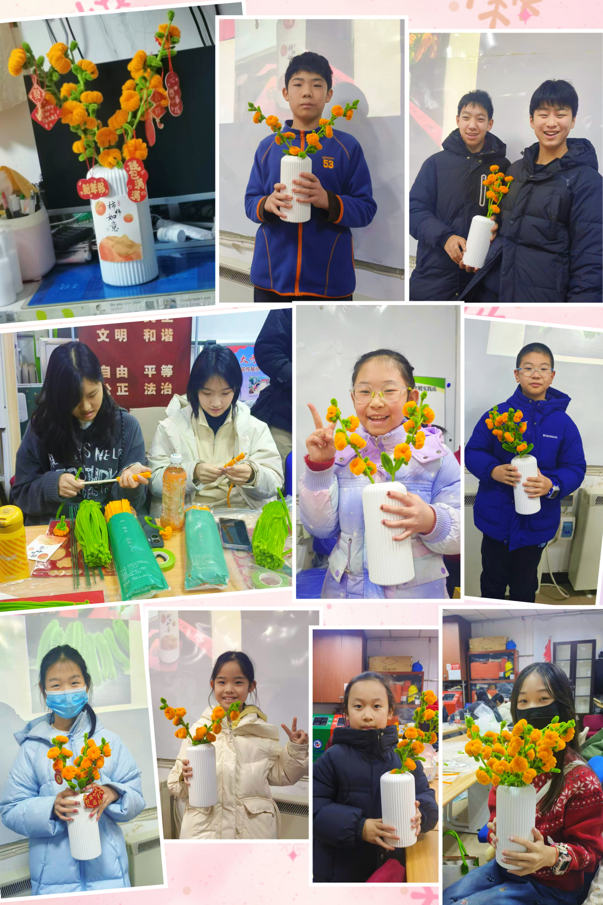 经过一个多小时的用心制作,所有家庭均成功完成了属于自己的福抱桶。一件件作品创意十足,巧妙融合了象征丰收的金黄柿子、喜庆的“福”字贴饰以及各类中国结、如意纹等传统吉祥元素,不仅外观精美,更承载着“事事如意、福气盈门”的美好寓意。孩子们兴奋地展示成果,在亲手制作的过程中,深切感受到了浓郁的传统年俗文化与手工创作的魅力。