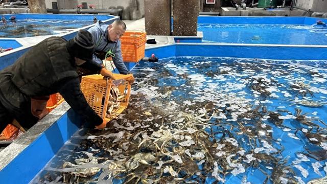 “75吨帝王蟹,听着数量庞大,船还没靠岸,订单已经排得满满——30%直供高端餐饮,40%入驻全国连锁商超,还有30%则通过电商直接进入消费者的‘购物车’。”润泽国际商务经理胡世杰介绍,根据目前的预订情况,今年春节,仅线上订单就约有5万单,销售额近500万元,与去年同期相比,帝王蟹、美贝、虾夷贝、波龙的销量增长了30%至50%不等。