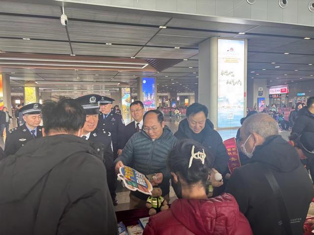 “祝您旅途平安,也请一定警惕陌生来电!”在站内显眼的南侧牌匾下,工作人员和民警一边送上飘着墨香的手写春联和“福”字,一边送上贴心的安全叮嘱。这份特殊的“年货”,让许多旅客惊喜驻足,笑意盈盈地接过祝福,也将安全提醒牢牢记在心里。