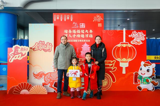 “非遗体验”专区内,各类非遗佳作静静陈列,让旅客在旅途中邂逅非遗之美,领略独特文化底蕴;“春日合拍”专区精心布设全家福背景,暖意融融的景致引得过往旅客驻足合影,拍一张充满喜庆和爱意的全家福,定格旅途温情与春日欢喜;留言专区旅客们纷纷写下新春祈愿,让美好与祝福在站区悄然传递。“春日安康”专区,身着“旅客身边人”马甲的志愿者们,细致讲解着应急安全知识、发放宪法宣传品,将普法与安全宣讲融入春运服务全程,默默守护着旅客的出行平安。海淀交通支队、海淀区地震局的志愿者们为大家讲解文明安全知识,发放宣传品,温情传递节日问候。