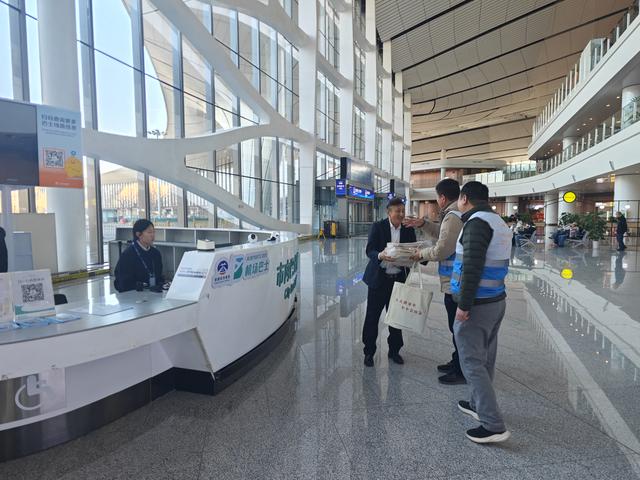 为保障春运期间大兴机场地面交通运营秩序,提升运营服务水平,营造安全、有序、温馨的出行环境,2月2日春运首日,市重点站区管委会大兴机场协调办联合大兴机场、市交通委交通执法十二支队、丰台运管分局等多家单位,在出租车调度站台、机场巴士乘车区等交通接驳区域,以“平安春运·温馨出行”为主题开展宣传活动。