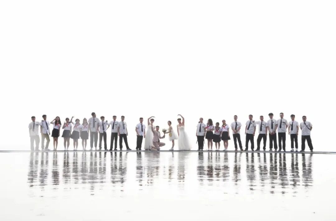 拍摄那天,海埂大坝上聚了不少人。摄影团队特意准备了999朵红玫瑰,温暖的氛围也感染了路过的行人。陌生的女孩大方地称赞:“嬢嬢,你好漂亮!”