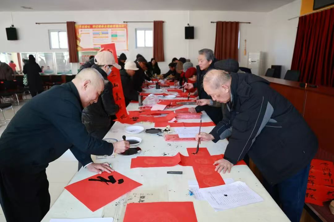 新春将至,年味渐浓。为弘扬中华优秀传统文化,丰富基层群众精神文化生活,把浓浓的年味儿和新春祝福送到百姓家门口,近日,市楹联学会、区文联,区作家协会楹联专委会、区民间文艺家协会艺术家及书法家走进军庄镇新村开展写春联送祝福活动。