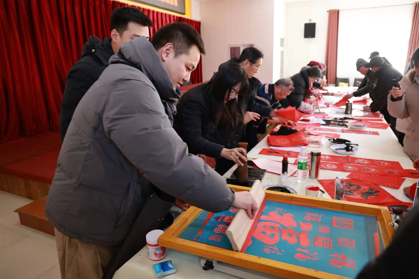 丝网印刷环节中,将新春吉祥图案通过丝网印刷的方式呈现。大家在指导下动手参与,亲手制作出独具特色的丝网印刷福字与年画,沉浸式感受现代工艺的趣味。