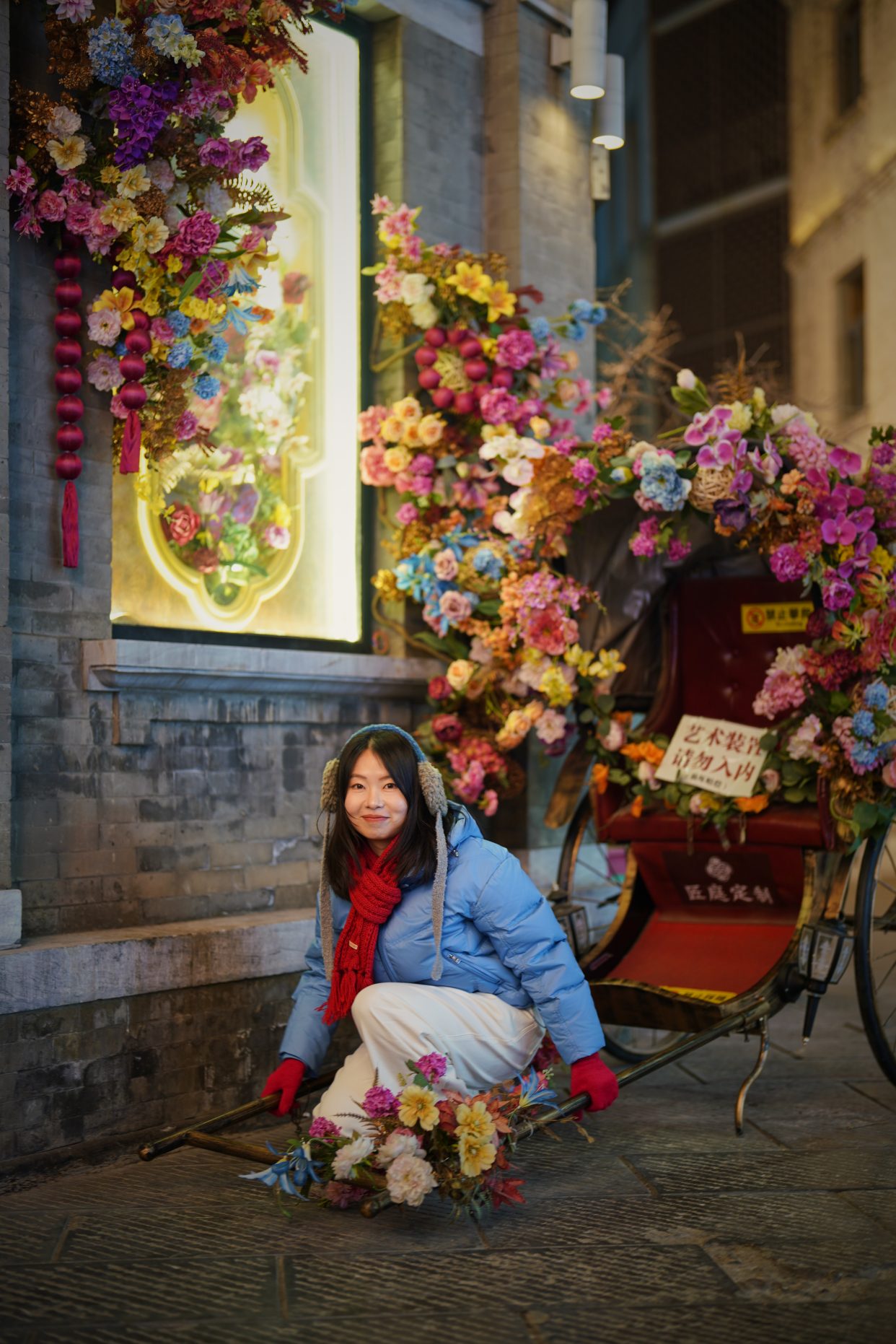 转角处,静静停驻的花车缀满春色,仿佛一声温柔的祈愿,落在夜色里。
