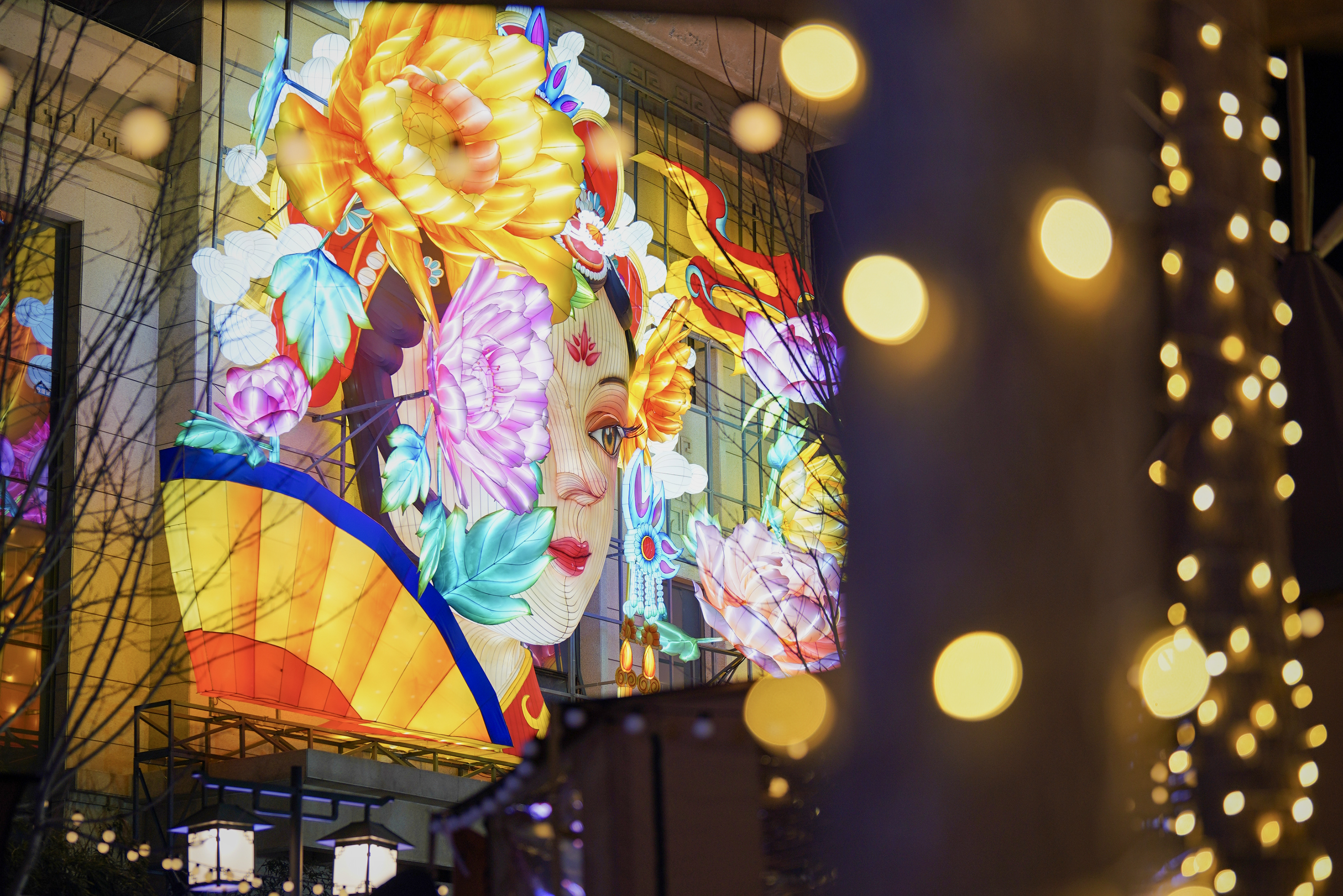 广和广场上,“旦愿春来”京剧花旦彩灯灵动传神,眉眼流转间,尽是京韵风华。