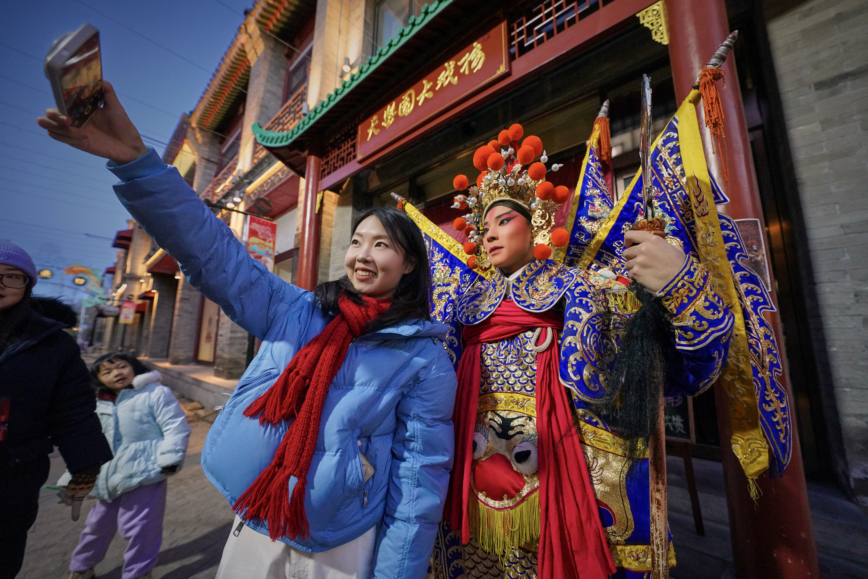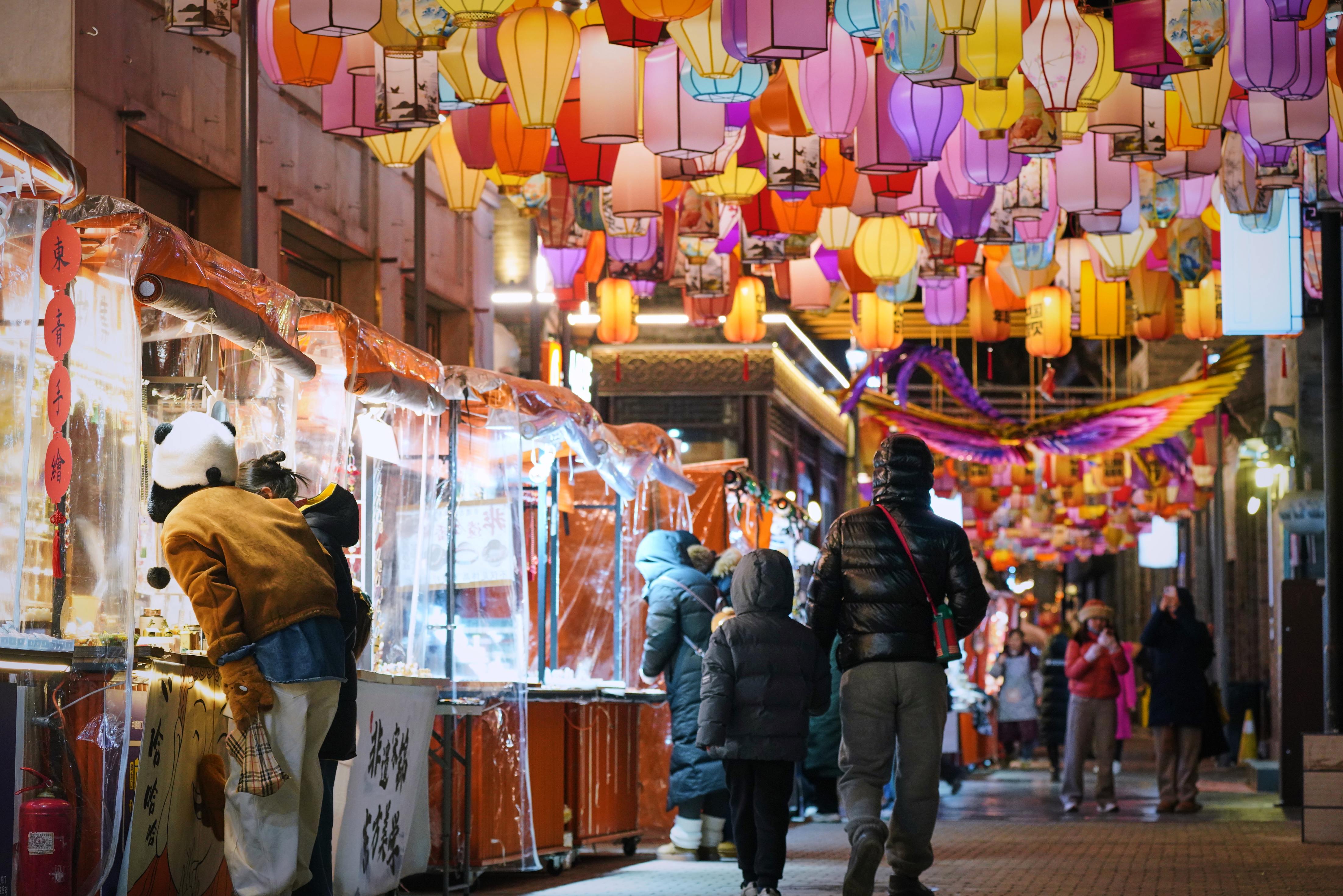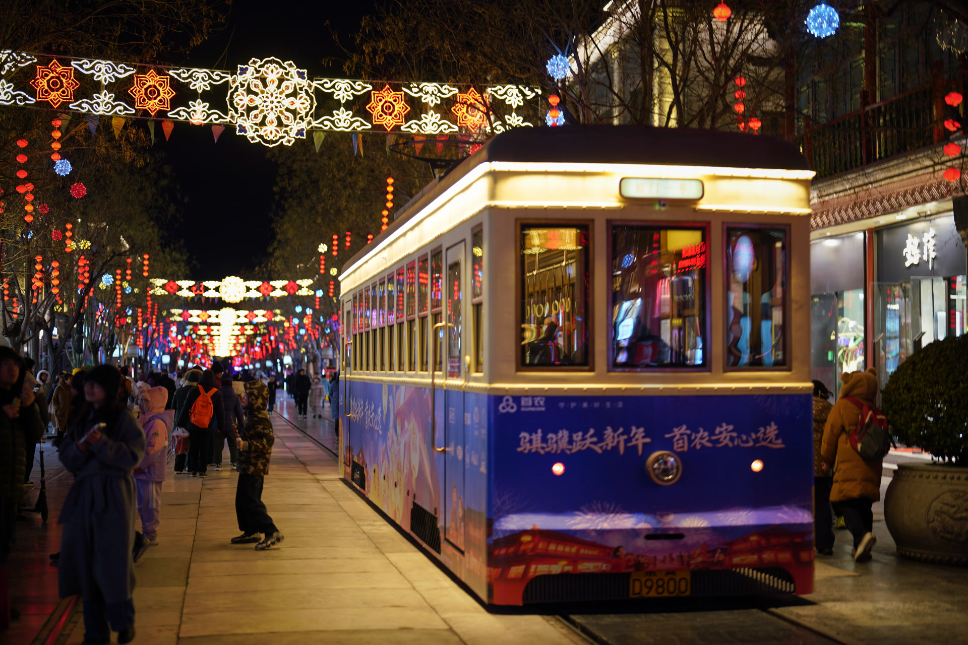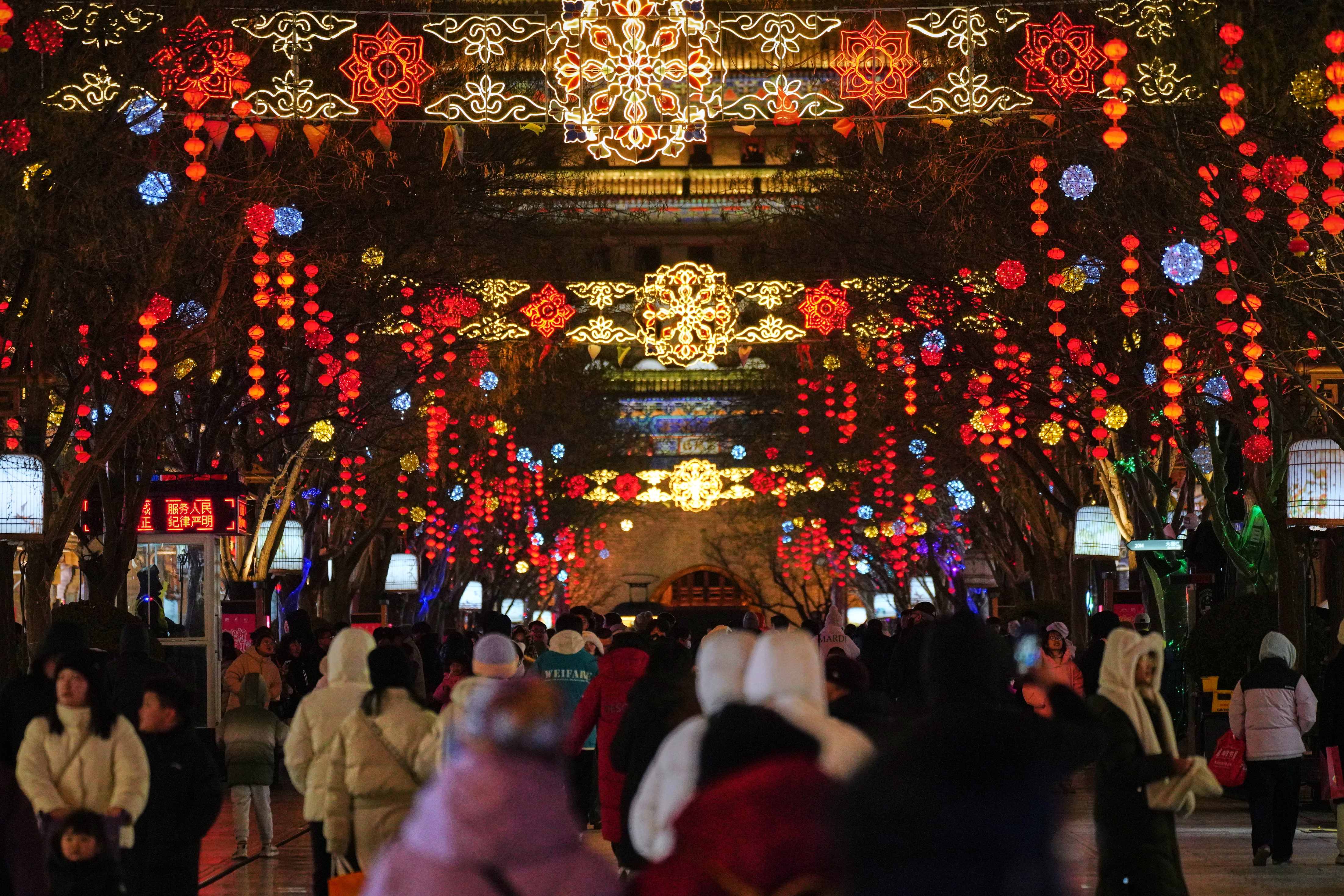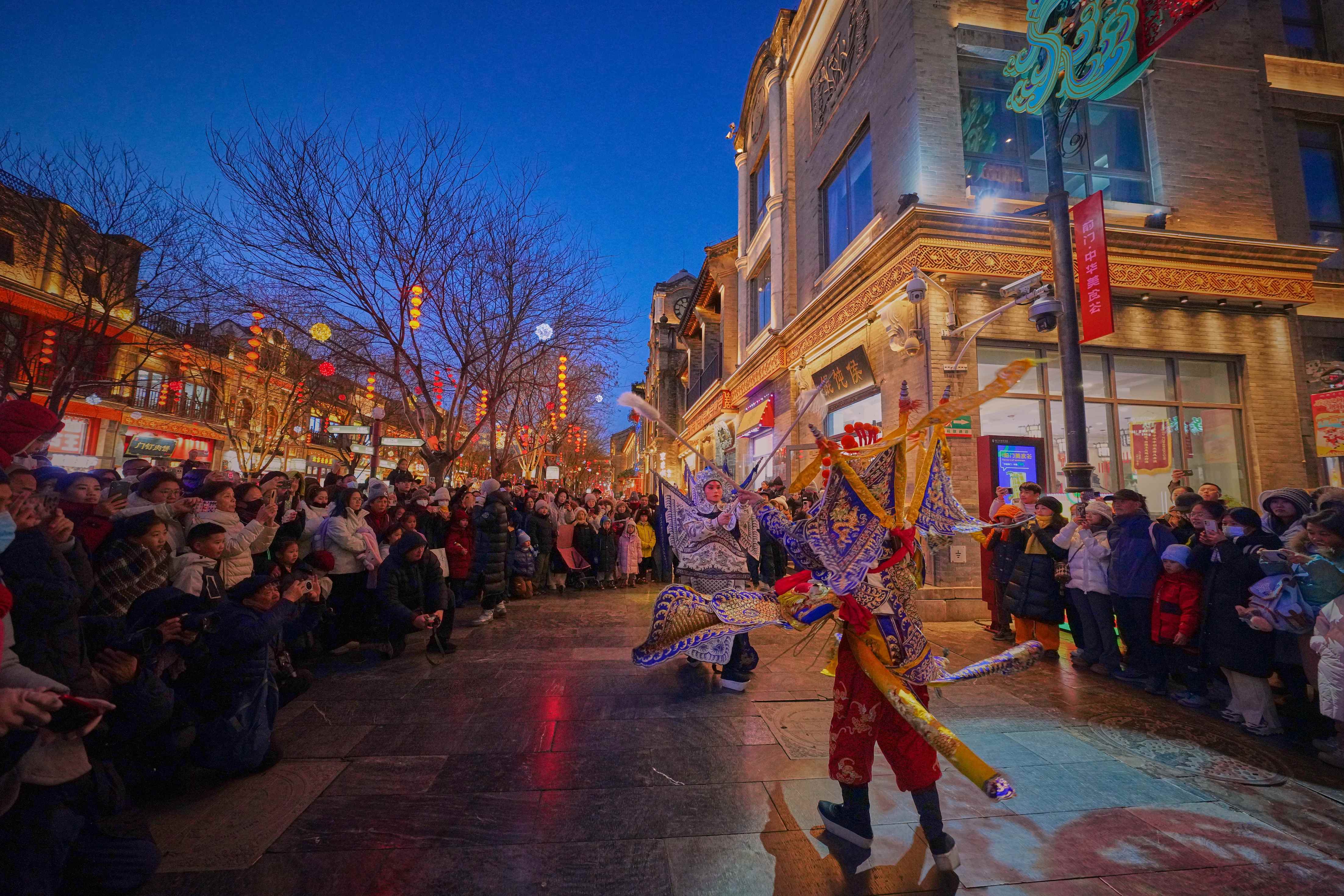 夜幕降临,前门大街便披上一身流动光彩。年味被盏盏花灯点亮,揉进满街光影,等你入画。