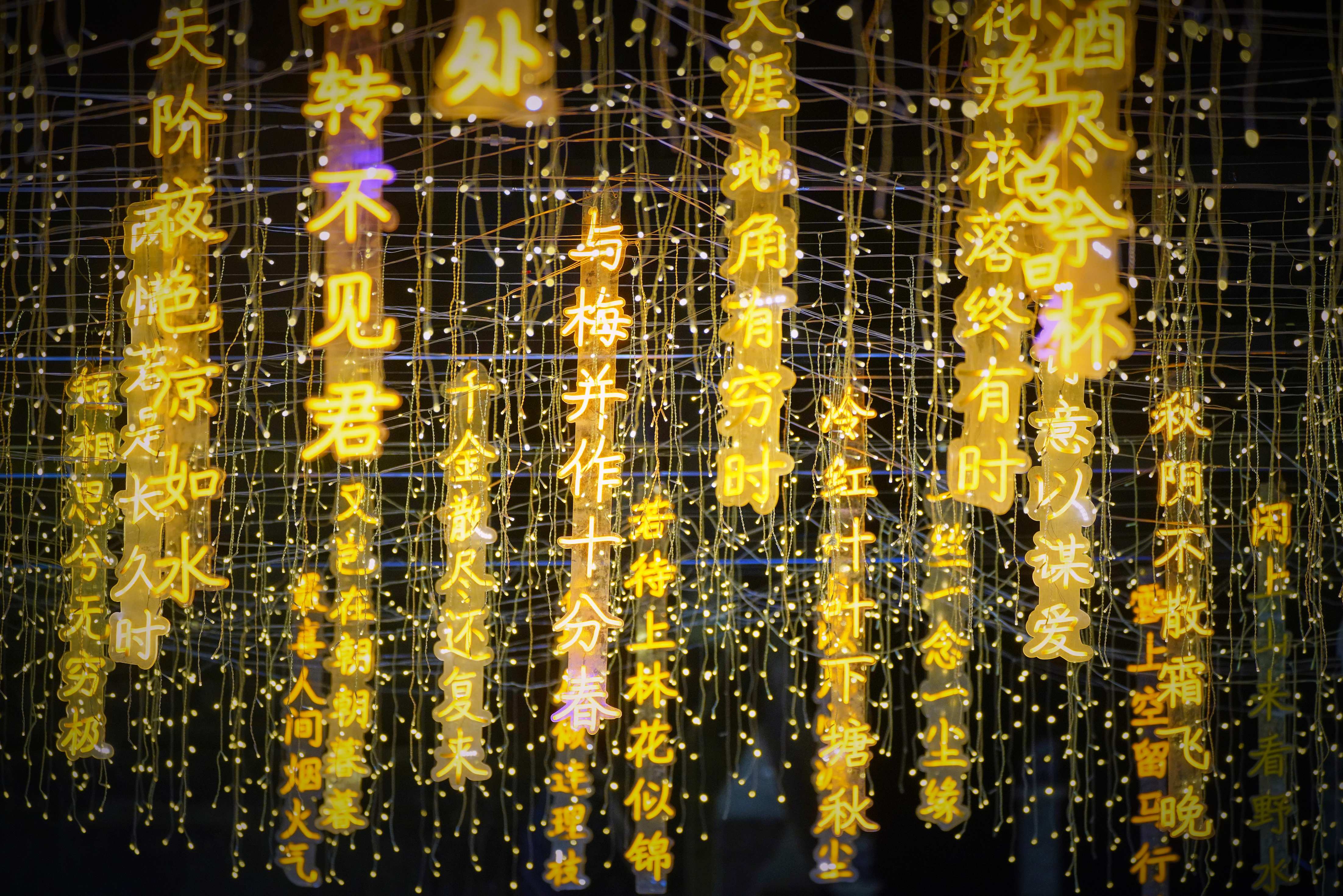 诗词灯牌悬于巷口,让光影也染上墨香,雅致且自成画卷。