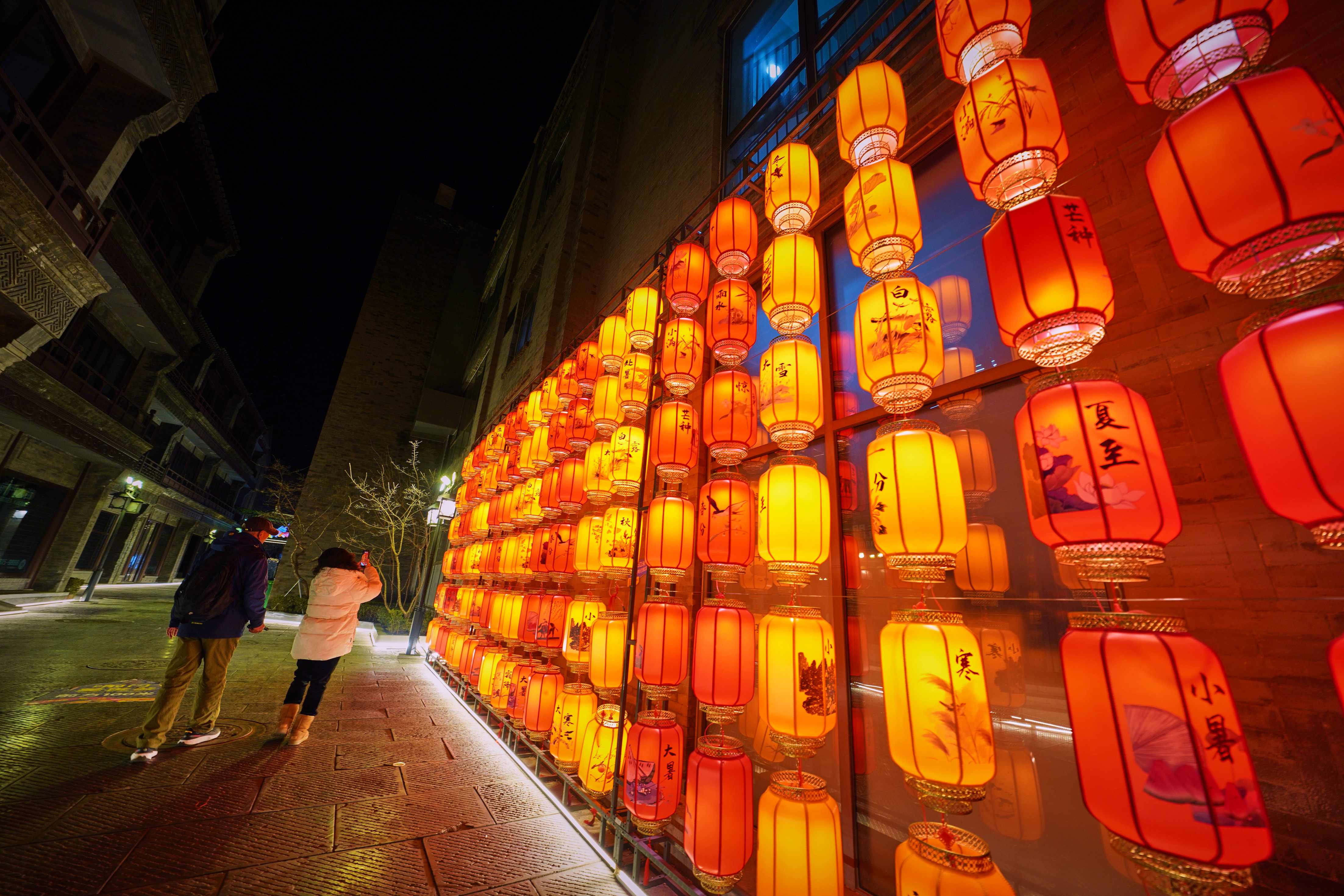二十四节气灯笼墙红得热烈而纯粹,是定格美好的绝佳纯色背景。