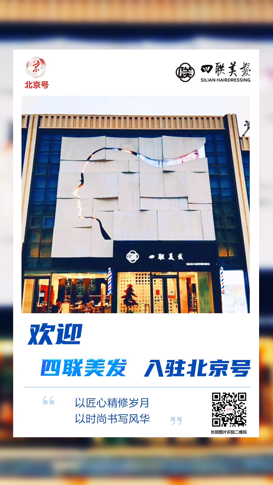北京四联美发美容有限责任公司为隶属于北京市东城区国资系统的中华老字号企业,自1956年组建至今,始终以匠心传承技艺,以真诚用心服务,深受几代顾客的青睐,现为东城区非物质文化遗产“传统理发项目”保护单位。
