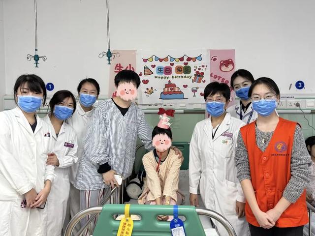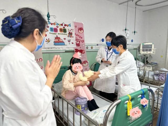 “过生日,怎么能少了专属王冠!” 伴随着温柔的话语,高艳丽微笑着走到患儿身边,为她戴上了可爱的生日帽。指尖的温柔、眼中的疼爱,让小琪露出了腼腆又灿烂的笑容。这顶小小的生日帽,不仅是仪式的象征,更承载着医护人员对孩子最真挚的关怀。