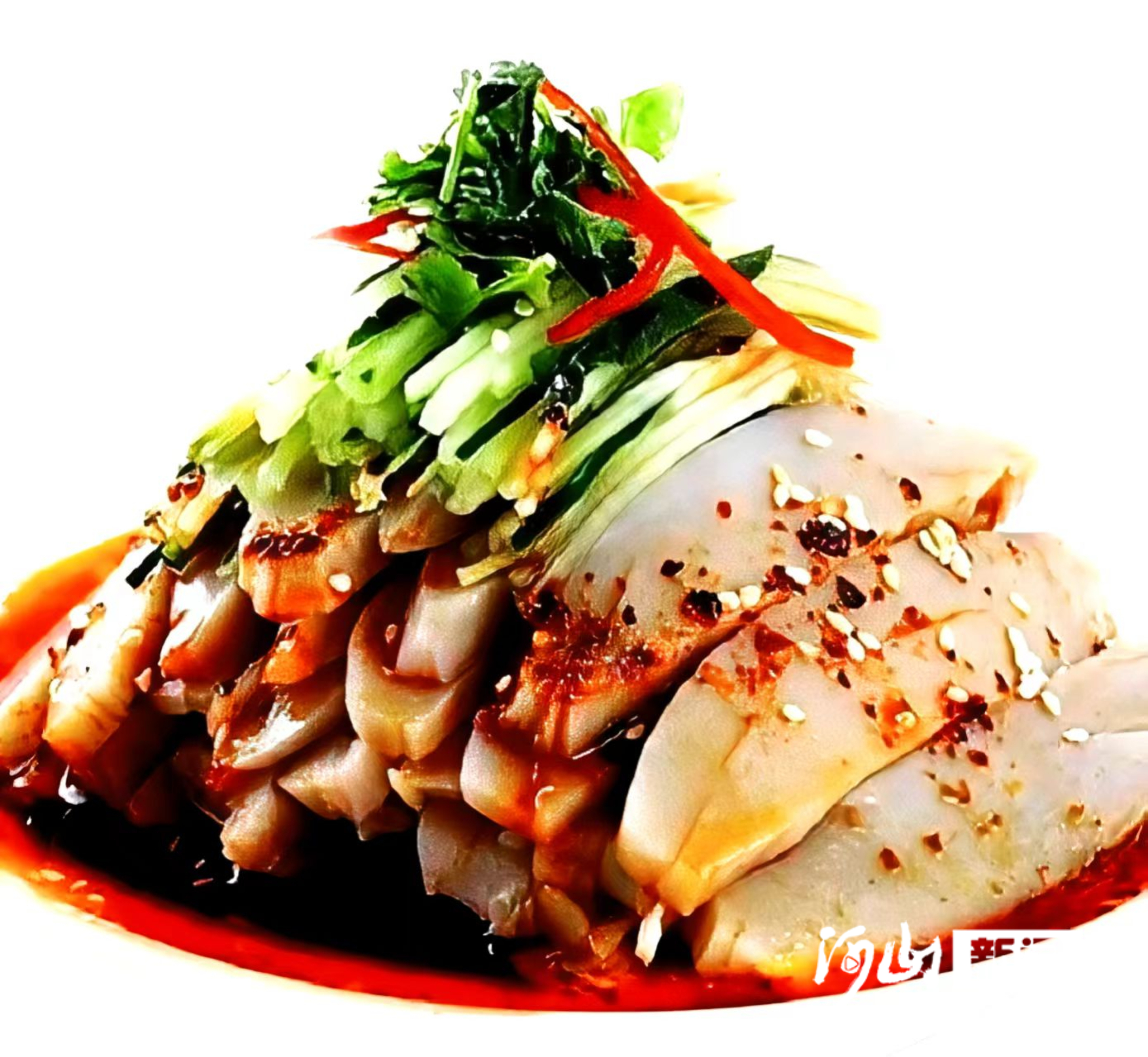 与饹馇的“宫廷奇缘”相比,荞粉的故事则带着民间传说的凄美色彩。传说万全城曾有位聪明美丽的荞麦姑娘,因被人讥讽婚姻而郁郁早逝。她的丈夫寒露思念成疾,泪落之处,竟长出了红杆杆绿叶叶的作物,开花结果后救活了饥荒中的乡亲,这便是荞麦。这个充满人情味的故事,为这味朴实的小吃披上了一层温柔的面纱。荞麦曾是度荒的救命粮,万全人将它做成碗托(凉拌荞粉)、粉干子、饸饹,加工方法原始简单,却最大程度保留了荞麦的清香与营养,成了今日清热降火、爽口开胃的绿色佳品。