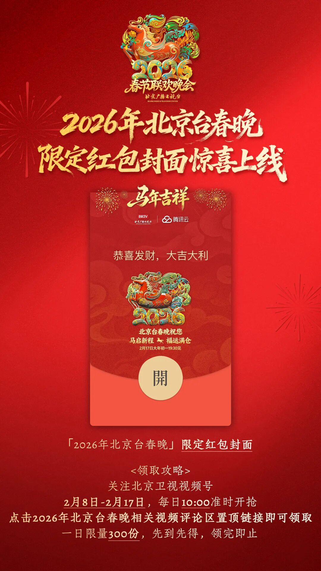 马到成功,福启新岁!北京广播电视台携手腾讯云智慧传媒,重磅推出2026年北京台春晚限定红包封面,邀您解锁北京台春晚专属年味,共赴马年新春之约!