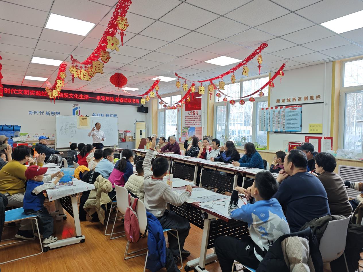 日前,回龙观街道新龙城西区社区热闹非凡,在新龙城西区社区居委会的指导下,依托社区社会工作服务站开展“手写年味——春联书写”亲子活动,特邀专业书法老师现场授课,大家齐聚一堂,以笔墨寄祝福,用红纸迎新春。