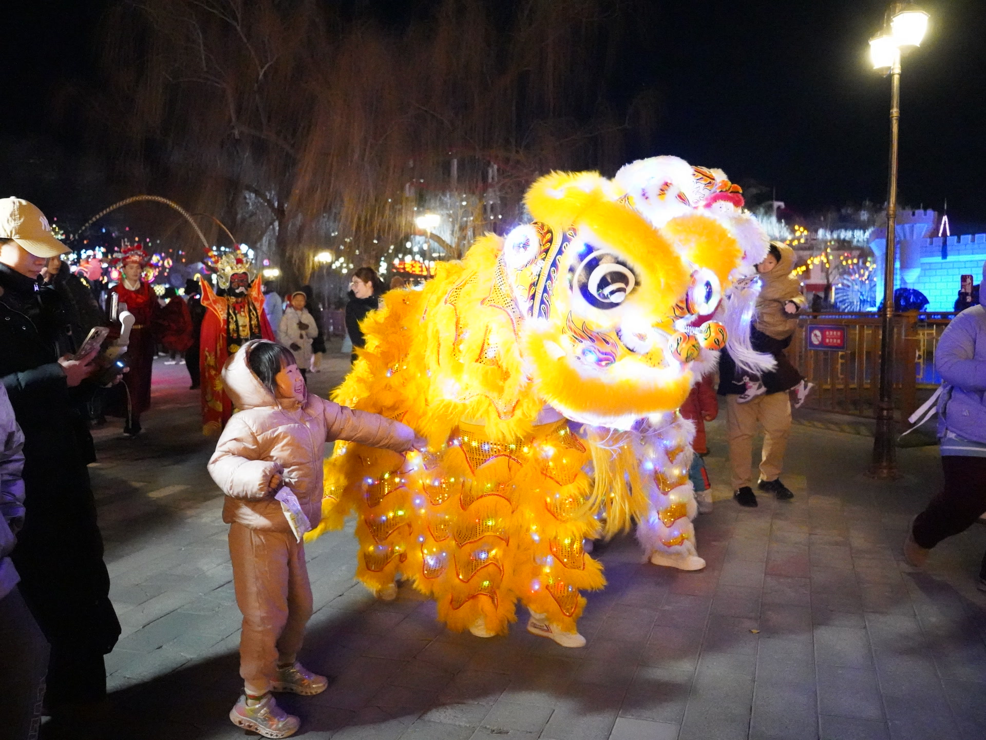 六大主题灯组移步换景,涵盖神话传说与梦幻雪景,随手一拍都是大片。东园市集汇聚京味小吃、国际美食与非遗文创,“京蒙牵手”带来27家内蒙文旅特色,更有有奖嘉年华与100%中奖入园抽奖,好礼不停。