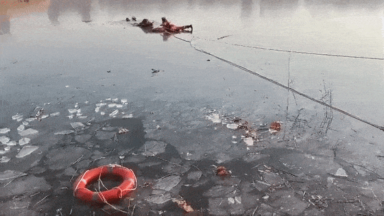 看到别人落入冰水中失去自救能力,应第一时间拨打119。然后在周边寻找救生圈、绳索等可漂浮、可抛投的工具,站在安全区域抛投给落水人员。在救人的同时,更要保证好自己的安全。