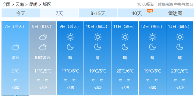 昆明7天天气预报