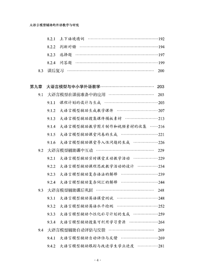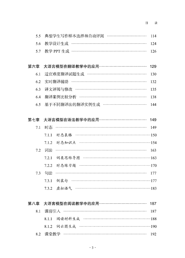 在教学应用层面,本书详细探讨了大语言模型如何融入外语教学的各个环节。例如,在语言技能培养方面,模型可作为强大的辅助工具:为写作提供实时反馈、构思建议与仿写练习;为口语训练生成多样化情景对话、扮演虚拟对话伙伴并提供发音与流利度分析。在课程设计与资源开发方面,书中介绍了如何利用模型快速生成贴合教学大纲的个性化阅读材料、文化背景知识介绍、分级测试题目,乃至设计项目式学习任务,极大地丰富了教学资源库,助力教师实现因材施教。在教学管理模式革新方面,本书也探讨了模型在学情分析、自动作业批阅、学习路径个性化推荐等方面的潜力,旨在提升教学管理的效率与精准度。在研究创新层面,该书着重阐释了大语言模型如何赋能外语学术研究。它不仅是高效的文献检索与综述助手,能快速梳理特定领域的研究脉络,还能作为文本分析工具,帮助研究者进行大规模的语言特征分析与话语分析等,揭示语言使用的深层规律。同时,著作也前瞻性地探讨了基于大语言模型为实证研究提供新的思路与工具。