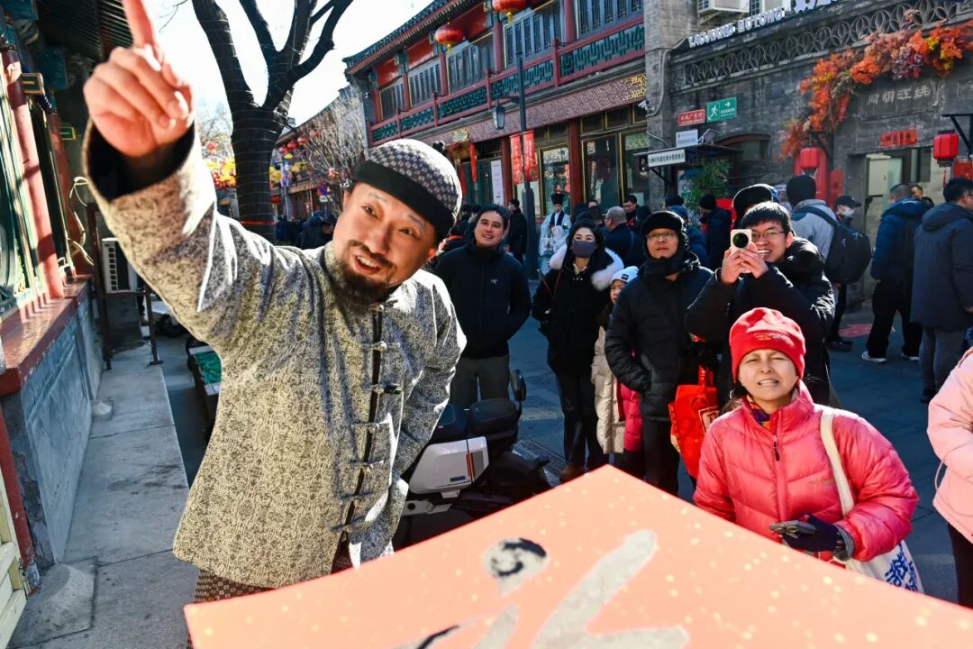 厂甸庙会因文市而闻名京城,位于琉璃厂地区这一文人雅士汇集之地,也让这里的活动多了一丝文气。活动首日,市民在欣赏节目之余,收到了书法家们手写的“福”字,各类精心设计的非遗体验活动,也让小年活动不只局限于吃吃喝喝。