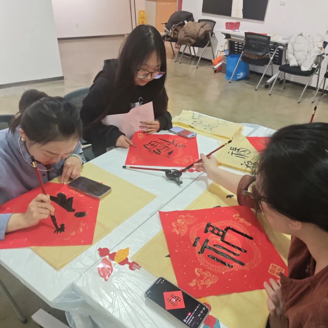 酒仙桥街道团委联合蓝色光标团支部开展“团团喊你过大年——墨香送福·丙午迎春”活动。以中华传统文化“春联福字”为载体,将传统书法和现代创意美术相结合,让大家在学习传统文化的同时体验软笔书法的魅力。现场,书法老师从握笔姿势、运笔技巧讲起,一步步演示“福”字和春联的写法,青年们热情挥毫、倾情创作,红纸铺展、翰墨飘香,一副副寓意吉祥、笔力遒劲的春联,一个个形态各异、满载福气的“福”字跃然纸上。作品既饱含对新春的美好期盼,又展现了朝气蓬勃的青春活力,更承载着对地区高质量发展的诚挚祝福。