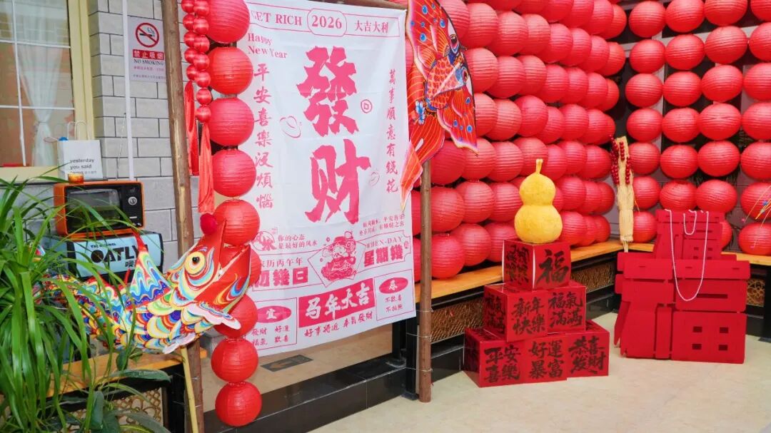 “为迎接马年,我们在咖啡产品中增添了马年元素,比如印有‘马上发财’‘马上来福’等吉祥话的杯套和小马手绘图案,让顾客在喝咖啡的同时感受年味。店内还挂起了大红灯笼,特别设计了具有芦庄特色的葫芦装饰,营造出充满本地气息的新春氛围。”卢婷说。